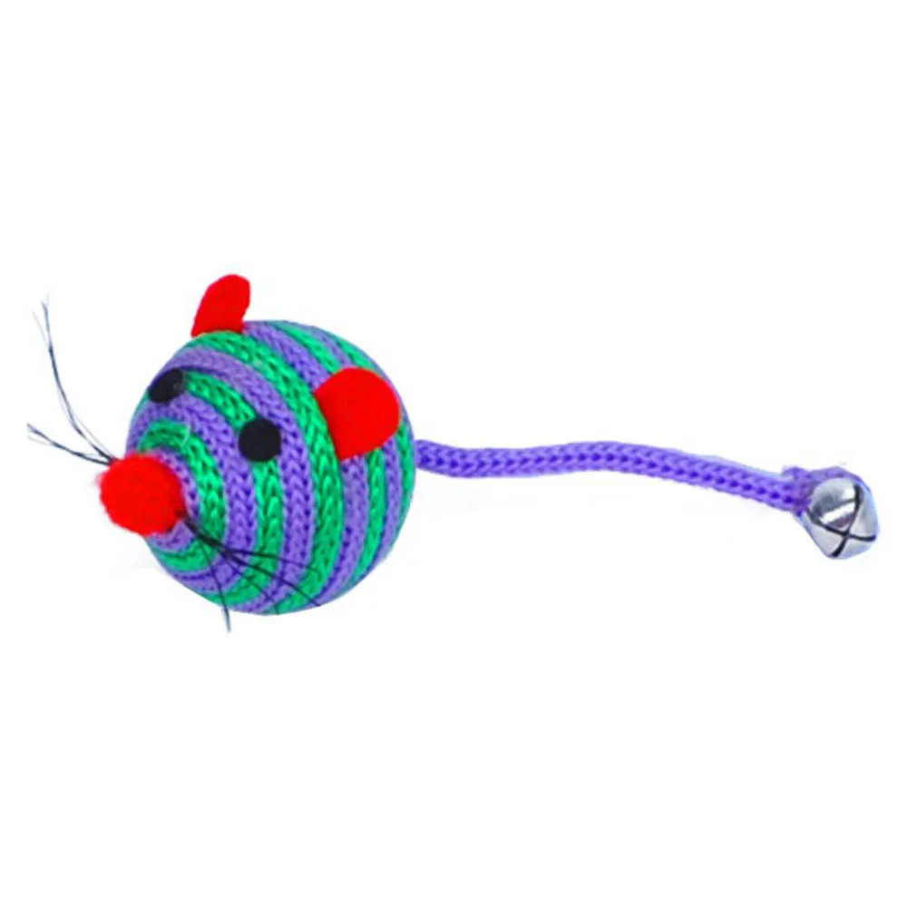 Милая полоса нейлоновая веревка круглый мяч мышь длинный хвост домашнее животное кошка укус играть игрушка с металлическим колокольчиком