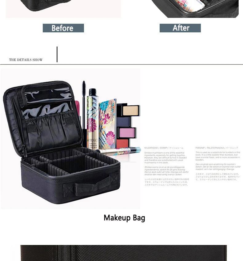 Наименование: органайзер Makwup Цвет: розовый/черный Характеристика: Большая емкость Использование: Рабочий стол/путешествия Материал: нейлон Примечание: 1. Возможны отклонения на 1-2 см в соответствии с измерениями вручную. 2. Светильник может отличаться по цвету из-за разницы в освещении. 3. Мы предоставляем лучший продукт и обслуживание, если у вас есть какие-либо проблемы, пожалуйста, сообщите нам, мы решим проблему