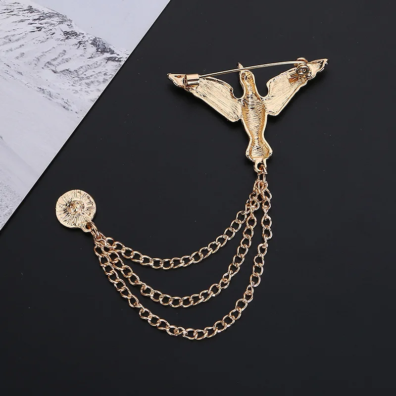 Модная винтажная Золотая брошь с орлом мужской костюм аксессуары цепочка кисточка Брошь булавка