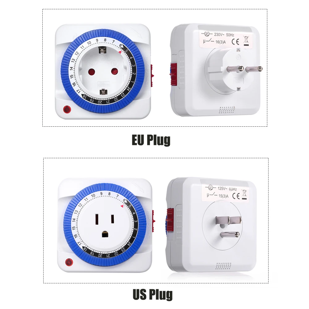 Этот 24 часа в сутки Подключаемый модуль Таймер переключатель используется дляАвтоматическое включение/выключение различных электроприборов в зависимости от времени установки, Такие как диспенсер для воды, водонагреватели, роутер, мобильные телефоны, рекламная подсветка и т. д. простота в эксплуатации, очень практичная и удобная в вашей повседневной жизни.