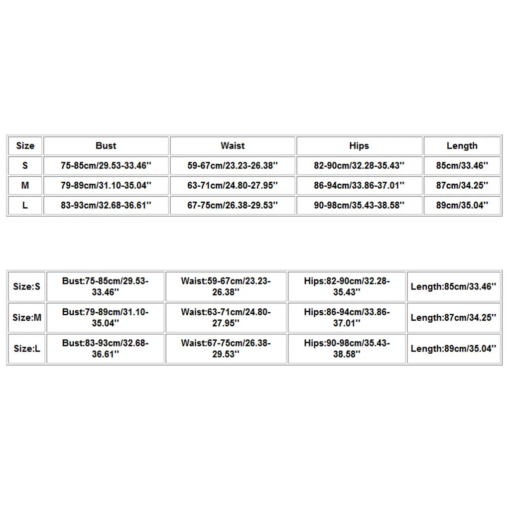 Размеры Обхват груди Обхват талии Обхват бедер Длина S 75-85 см/29,53-33,46'' 59-67 см/23,23-26,38'' 82-90 см/32,28-35,43'' 85 см/33,46'' М 79-89 см/31,10-35,04'' 63-71 см/24,80-27,95'' 86-94 см/33,86-37,01'' 87 см/34,25'' L 83-93 см/32,68-36,61'' 67-75 см/26,38-29,53'' 90-98 см/35,43-38,58'' 89 см/35,04''