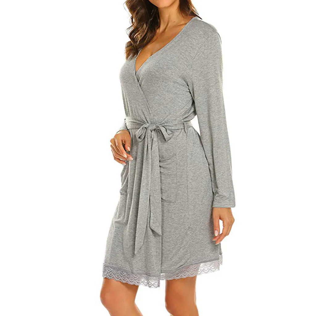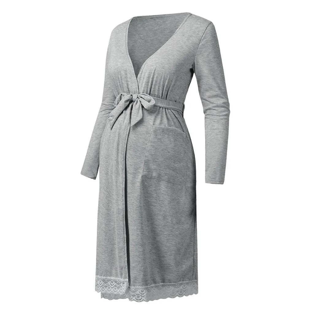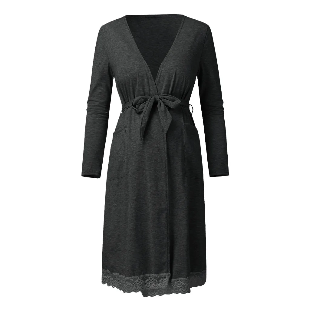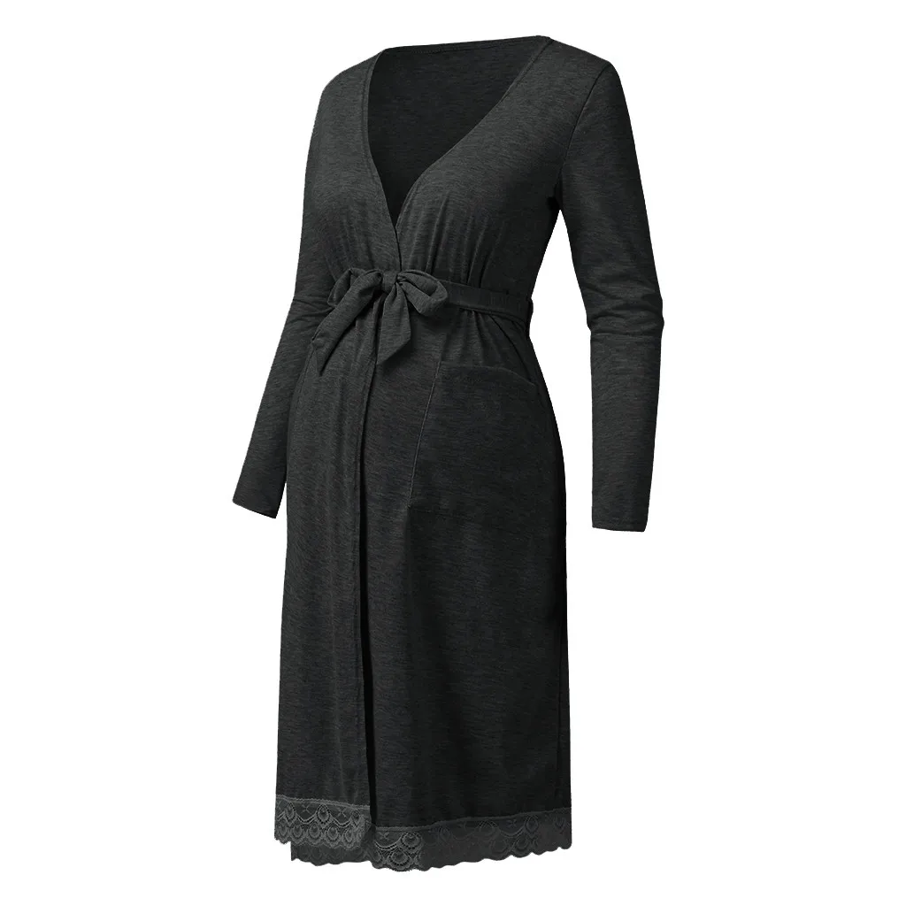 Платье для беременных женщин с длинным рукавом, однотонное кружевное платье для беременных для грудного вскармливания, Повседневное платье для сна для беременных