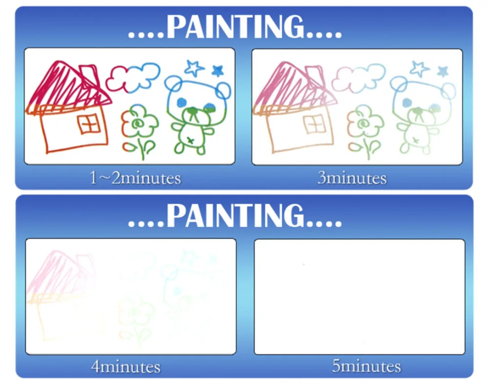 - Рисунок волшебным образом исчезнет через несколько минут, дети могут рисовать снова и снова.