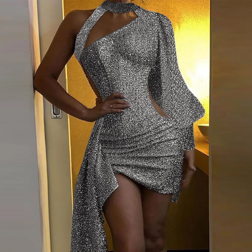 Женское повседневное мини-платье с круглым вырезом и длинным рукавом