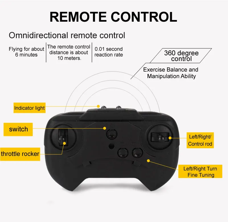-2,4G пульт дистанционного управления: до 50 метров дальности передачи.