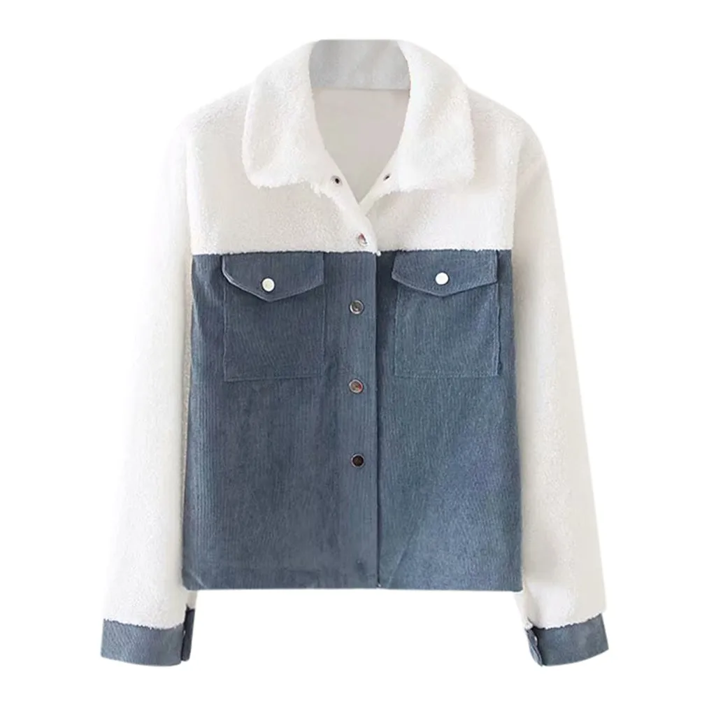 Вельветовые пальто из овечьей шкуры с пуговицами спереди и классическим воротником, куртки с длинными рукавами 2020, Женская Повседневная Верхняя одежда на весну и осень