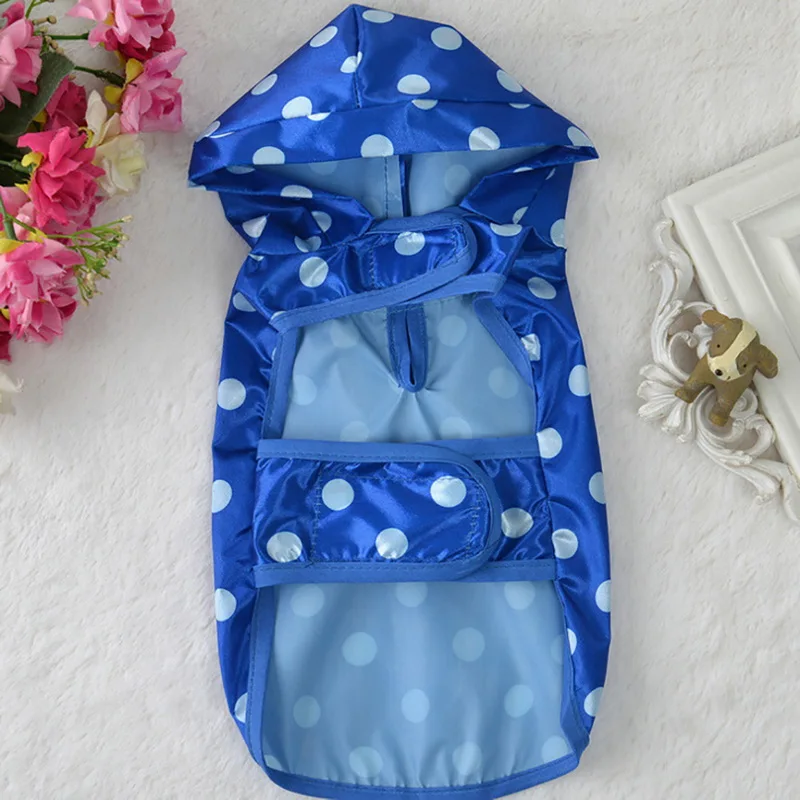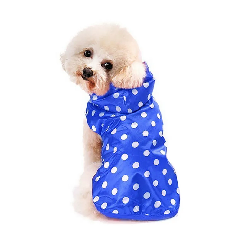Горячая продажаDozzlor 1 шт. дождевик для собак водонепроницаемая одежда с капюшоном для собак дождевик в синий горошек плащ для маленького большого щенка питомца дождливая XS XL с капюшоном
