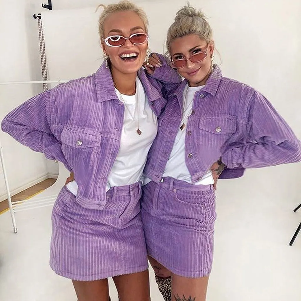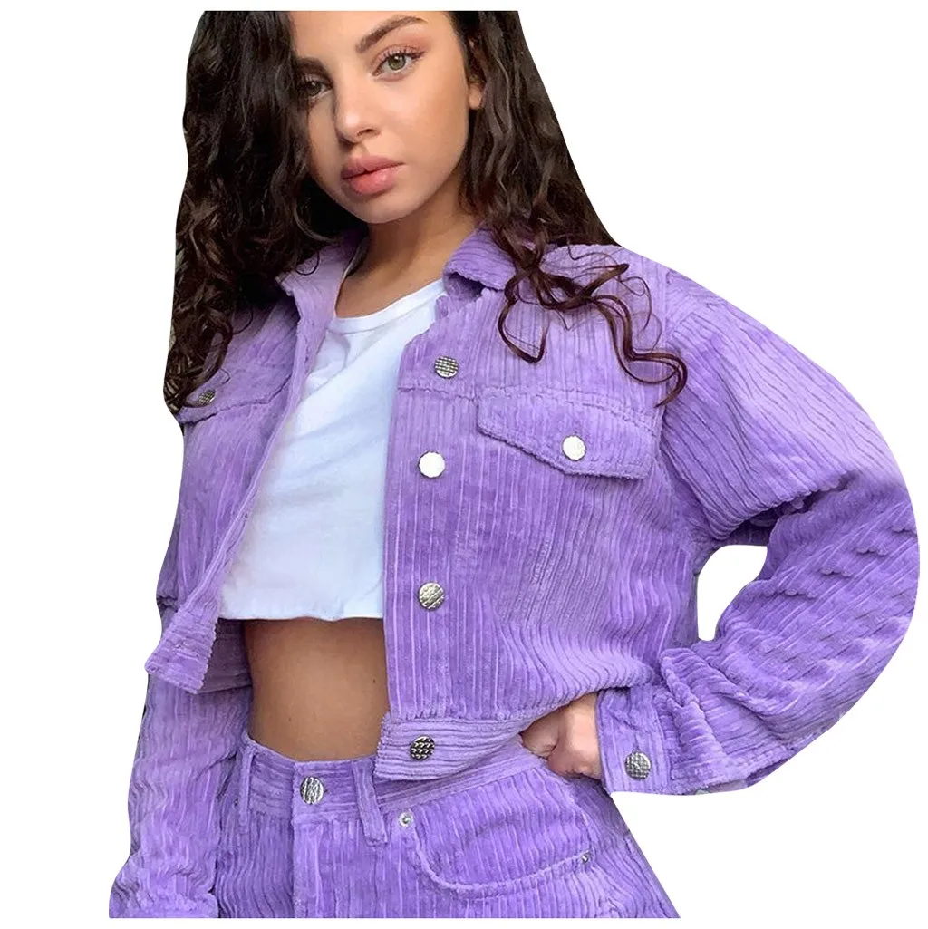 Крутая уличная одежда для сестер, верхняя одежда, пальто 2020, новая мода, вельветовый стиль, однотонный, короткий карман, отворот, свободная куртка на пуговицах, пальто