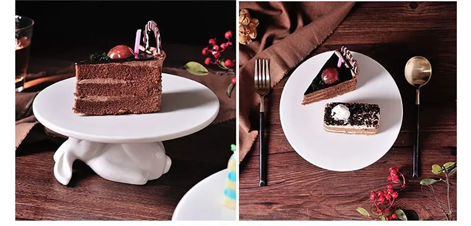 Материал: Керамика Цвет: белый Посылка включает в себя: 1 набор лотков для торта с кроликами Особенности Особенности: милый кролик