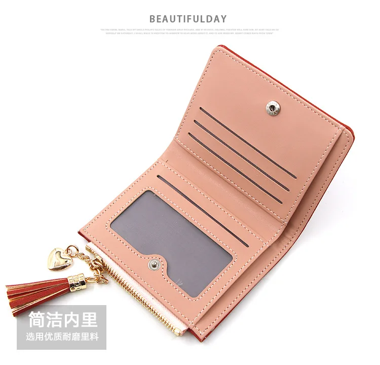 Интерьер: 4 * держатель для карт 1 * карман для монет на молнии 1 * отделение для банкнот 1 * держатель для фотографий