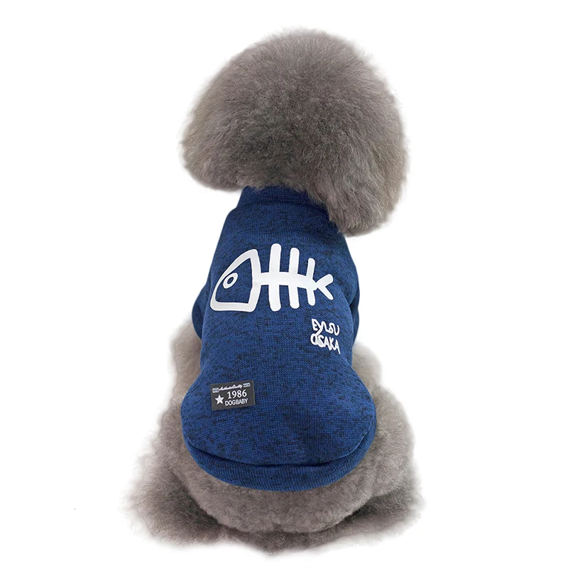 Urijk/Новинка, одежда для собак с рыбьими костями, синий, серый и зеленый цвета, милая теплая для щенков собак, жилет с кошкой, одежда, повседневные футболки для домашних животных собак с рисунком