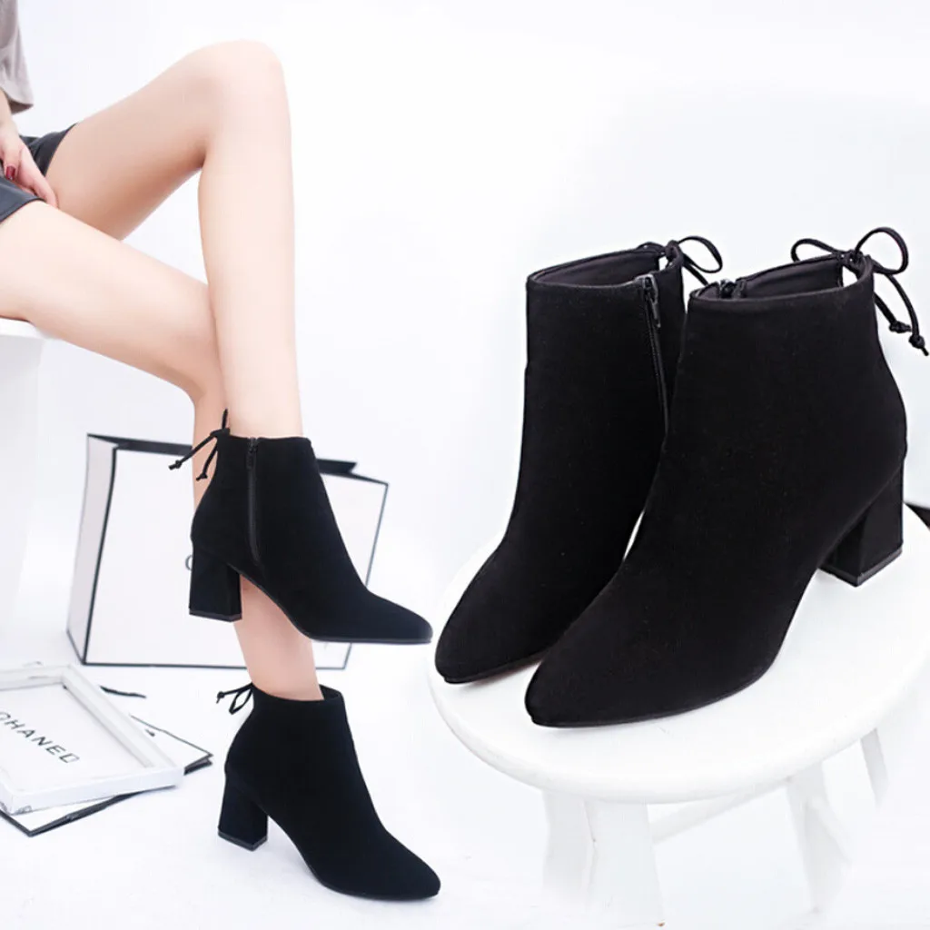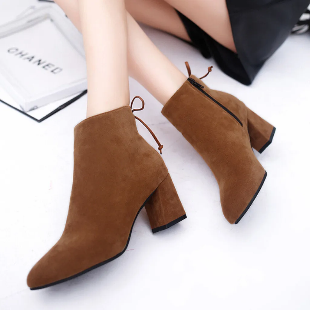 Женская обувь на высоком каблуке на молнии Цветные ботинки с круглым носком