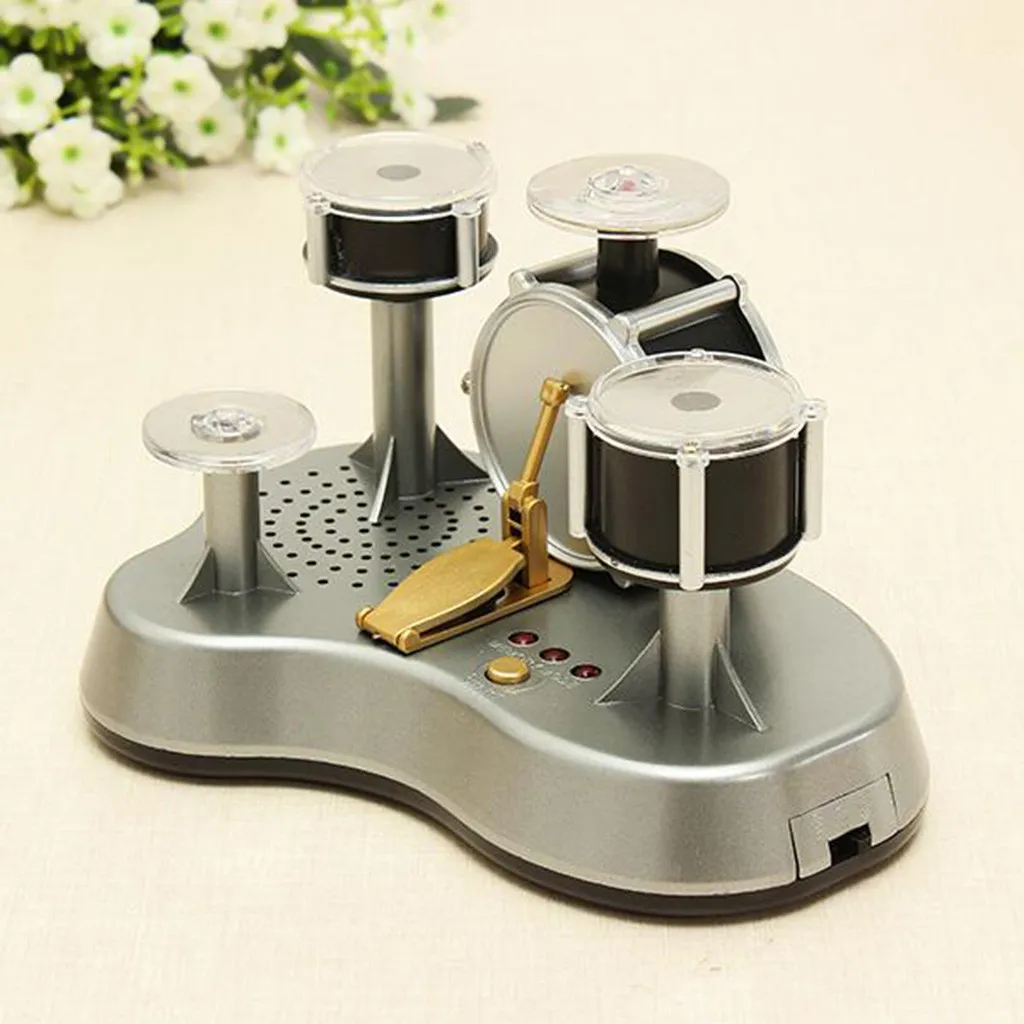 1) пальчиковые барабаны это Настольный Электрический барабан, набор. Удары верхней части большого Тома, маленького Тома или барабана snare заставляют барабаны пальца воспроизводить соответствующий звук из его внутреннего динамика. Внутри барабана также мигает холодный светильник. Нажмите на педаль басового барабана или Ударьте по тарелке, чтобы активировать их звук.