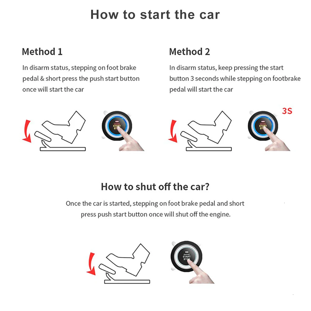 -Не нажимайте тормоз, короткое нажатие, чтобы открыть звук ACC, затем нажмите кнопку «на» приборной панели,
