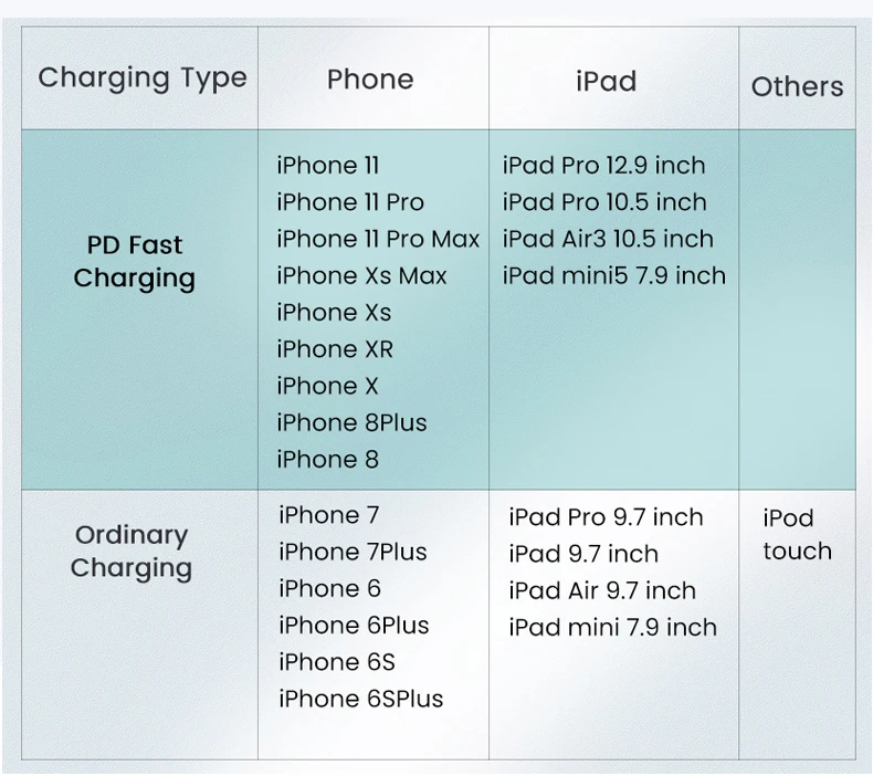 Зарядите ваш iPhone 11 от 0% до 50% всего за 30 минут. USB-C кабель Lightning поддерживает быструю зарядку для iPhone 11, 11 Pro, 11 Pro Max, X, XS, XR, XS Max, 8, 8 Plus, И другие более поздние модели при использовании вашего USB-C зарядного устройства (включая Apple 18W 29W, 30W, 61W или 87W USB-C адаптер питания)