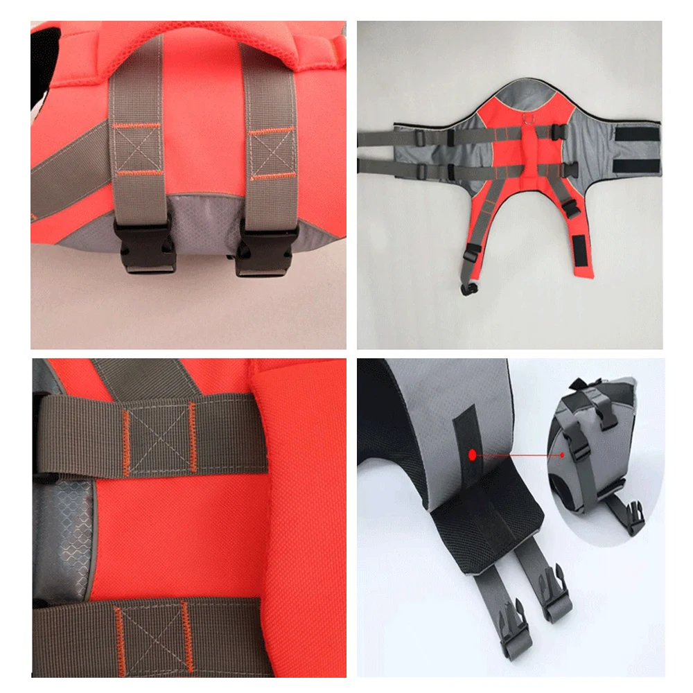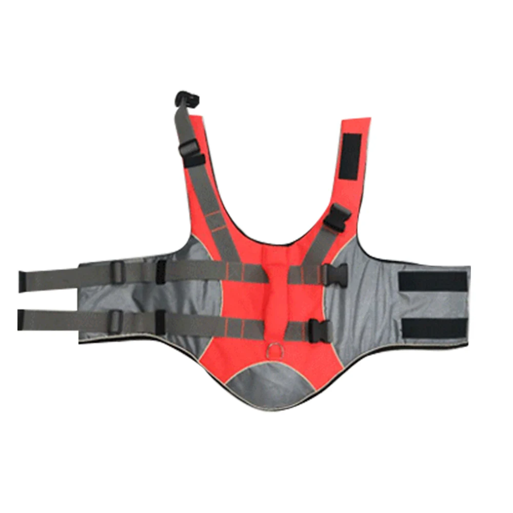 Регулируемый спасательный жилет для собак, разработанный с верхней полоской для легкого спасения вручную или крючком для лодки в воде.