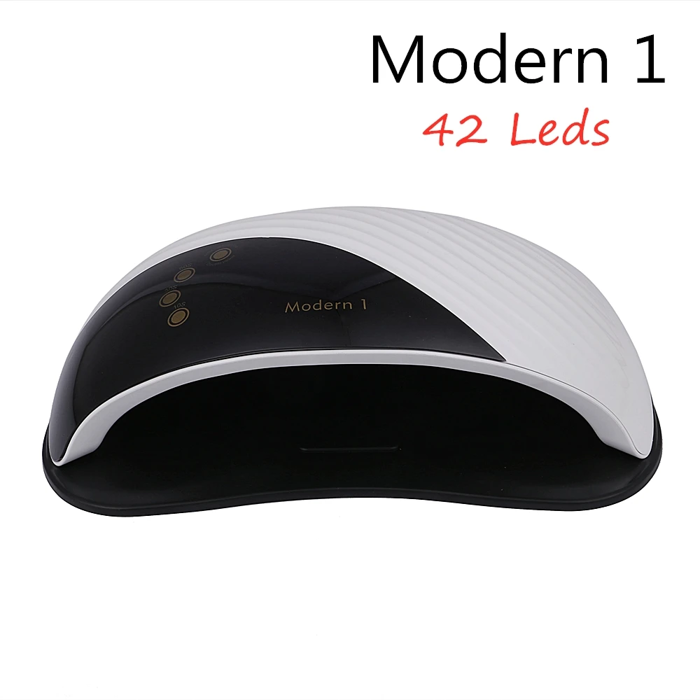 Название: Modern 1 Товар: Сушилка для ногтей Тип: УФ светодиодная лампа Материал: АБС Цвет: белый Мощность: 120 Вт Подходящий тип геля: все типы гель-лака для ногтей Вес: 870 г Номинальный Вход: 110-120 В переменного тока/220-240 В, 50/60 Гц Бусины лампы: 42 шт. Время: 10S/30S/60S/99S 100% новый и высококачественный