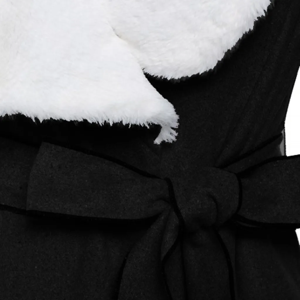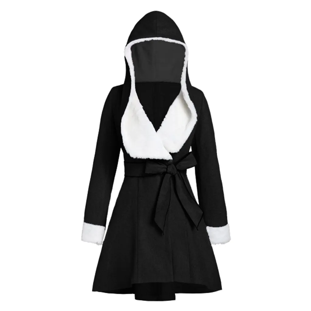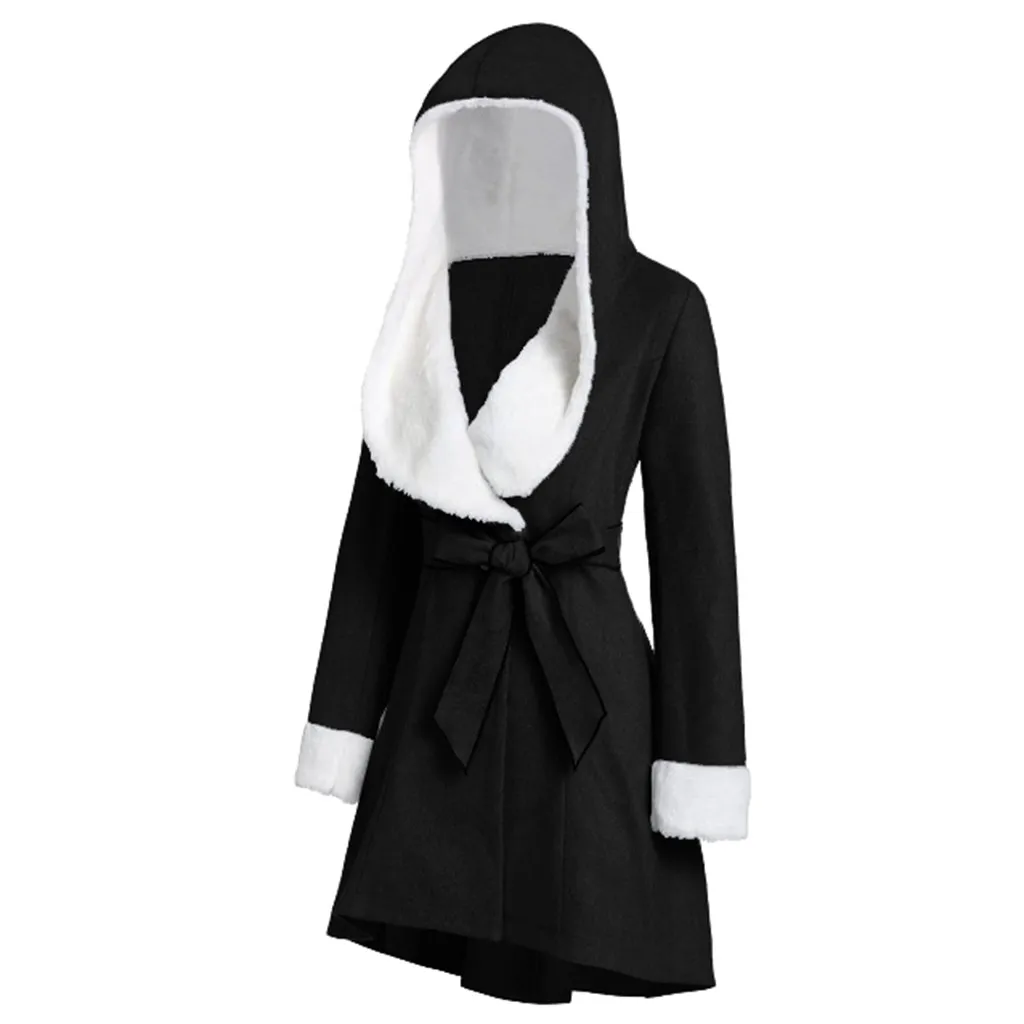 Женское шерстяное пальто, женская зимняя теплая плюшевая длинная куртка с отворотом, пальто с капюшоном, 2019