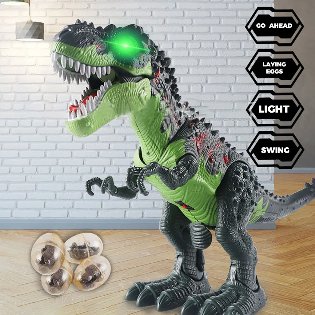 Характеристики: мигание, бег от батареи, звук, ходьба, звук, освещение, глаза и язык светятся, Яйца динозавра можно расстегнуть сзади.Посылка: