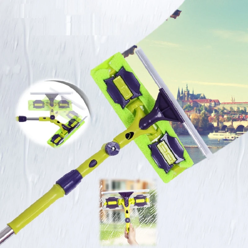 Акция! Инструмент для очистки стекла двухсторонний телескопический шток для очистки окон Ракель Щетка стеклоочистителя с длинной ручкой Вращающаяся головка щетка кремния