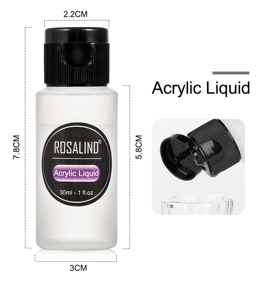 Бренд: ROSALIND Название: акриловый набор вес: 150 г используется для: наращивания ногтей и резьбы по ногтям в комплекте: акриловый порошок * 3, акриловая жидкость, ручка для резьбы и стеклянная чашка