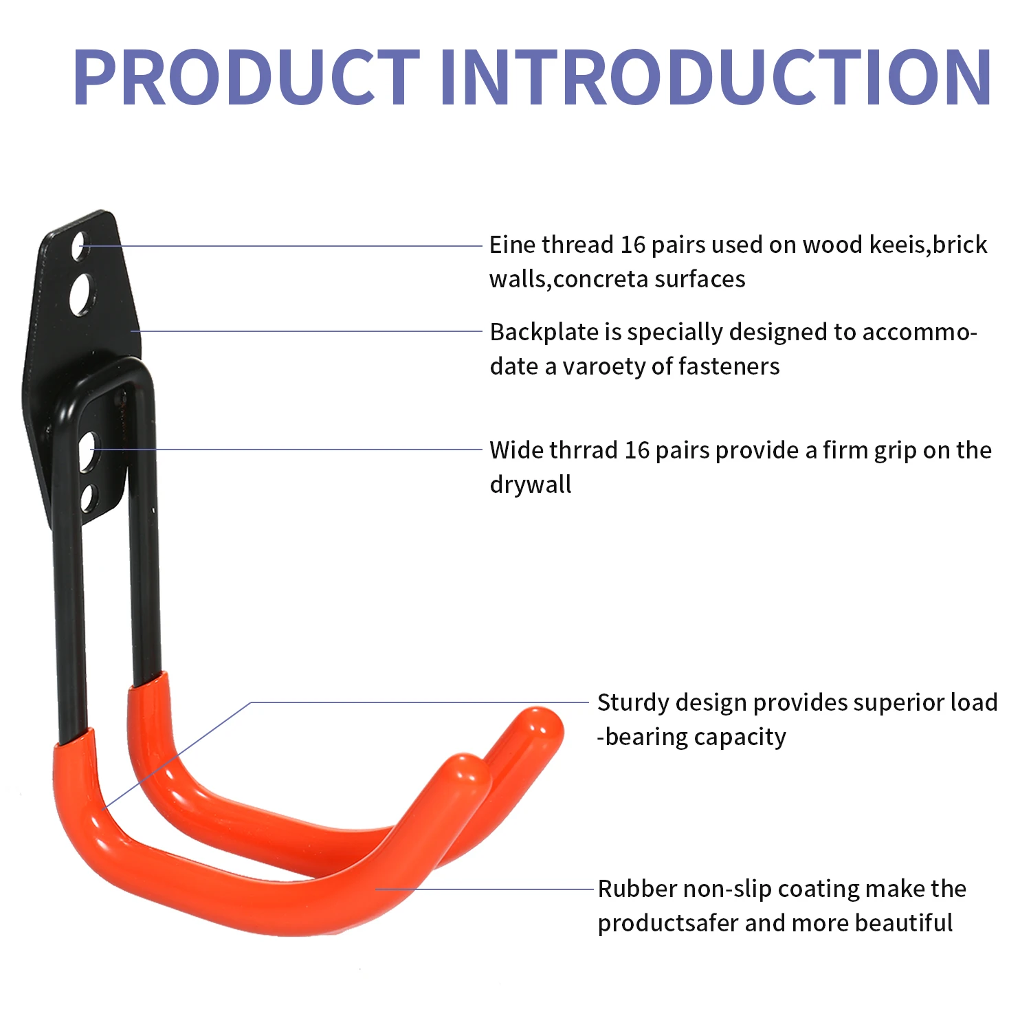 Противоскользящие и антикоррозийные крючки --- Противоскользящий резиновый крючок оранжевого цвета надежно удерживает товары и защищает поверхность товара от царапин. Железная поверхность имеет гладкое покрытие, которое предотвращает ржавчину даже во влажную погоду во время длительного использования.