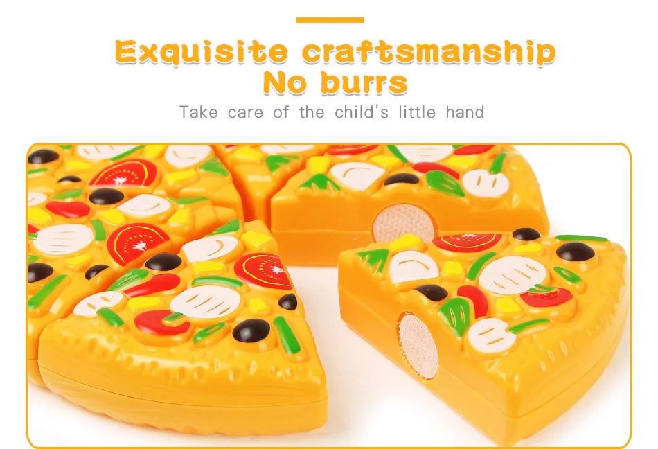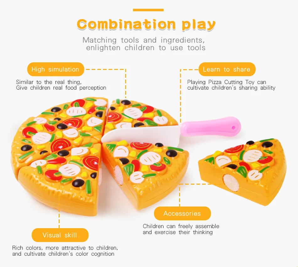 -Похоже на настоящую пиццу, дает детям реальное восприятие пищи. -Играйте с друзьями или семьей, развивайте способность делиться детьми. -Богатые цвета, привлекательные для детей и развивают их познание цвета. -Безопасный материал, не повредит детскую кожу. -Свободно собирайте, тренируйте воображение детей. -Способствует интеллектуальному развитию, умственному мышлению, тренингу по интересам, взаимодействию родителей и детей, эмоциональному взаимодействию, захвату, сенсорной, зрительно-моторной координации и развитию других способностей.