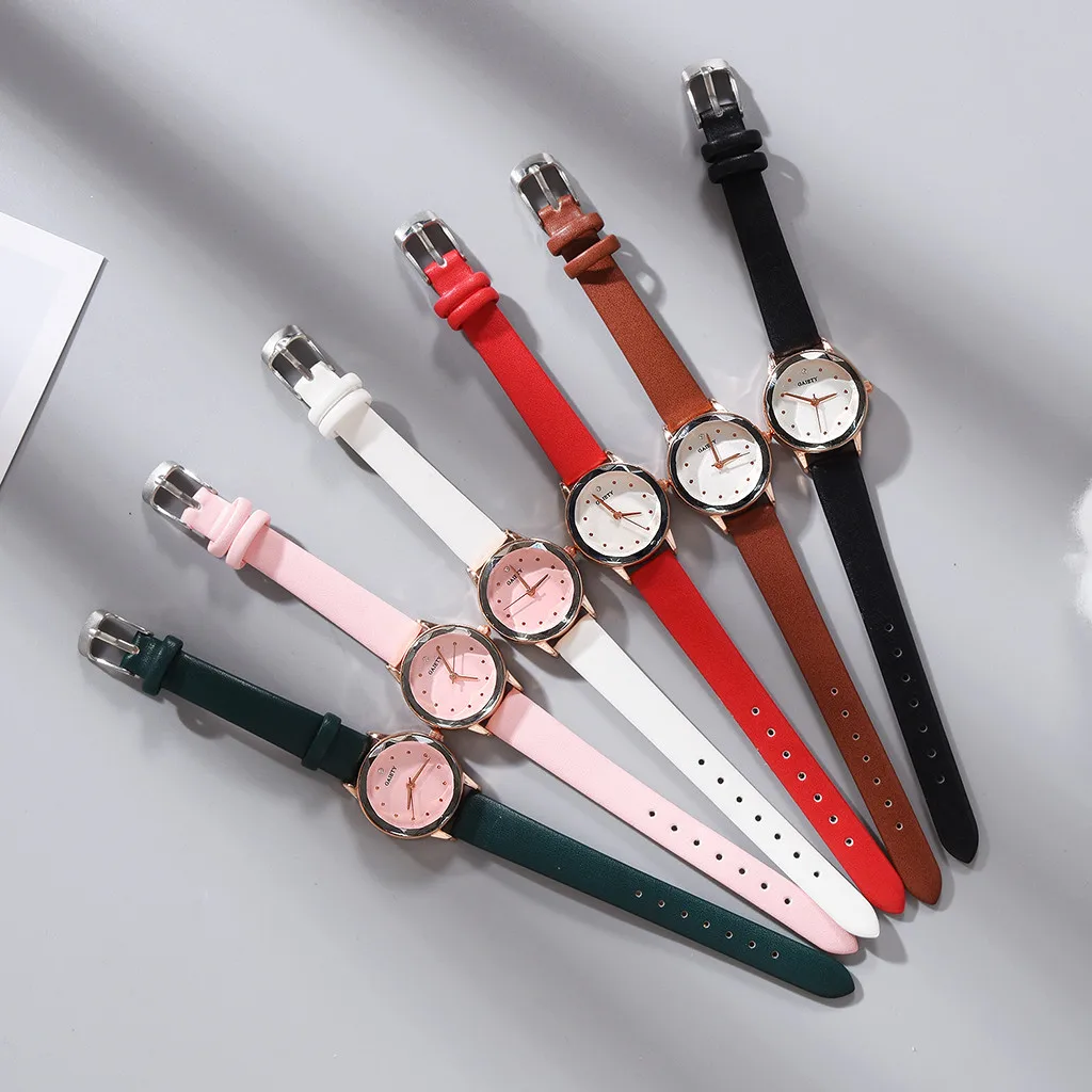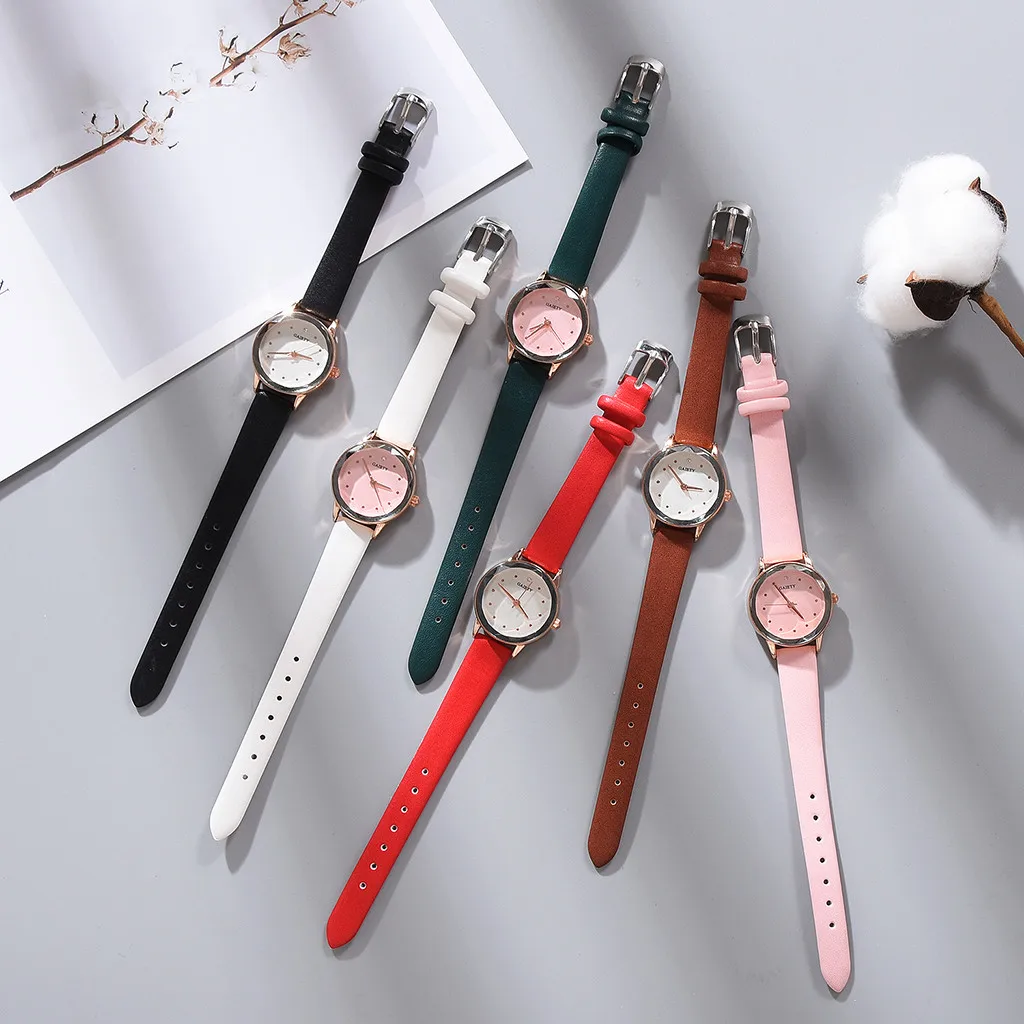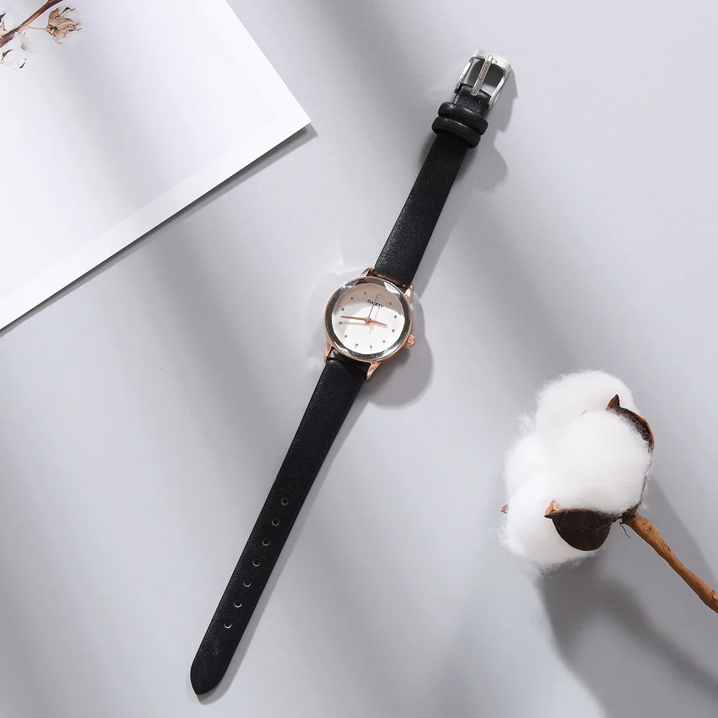 Модные Простые женские часы монохромный тонкий кожаный ремень наручные часы небольшой циферблат женские часы девушка вмятина часы женски подарки