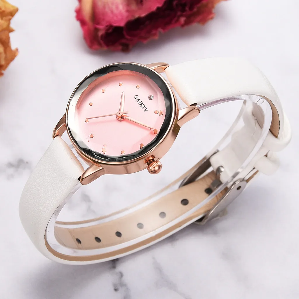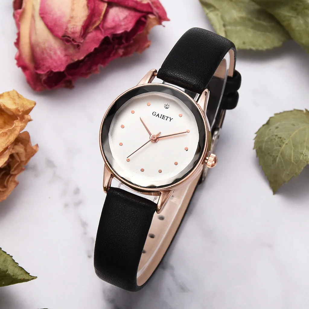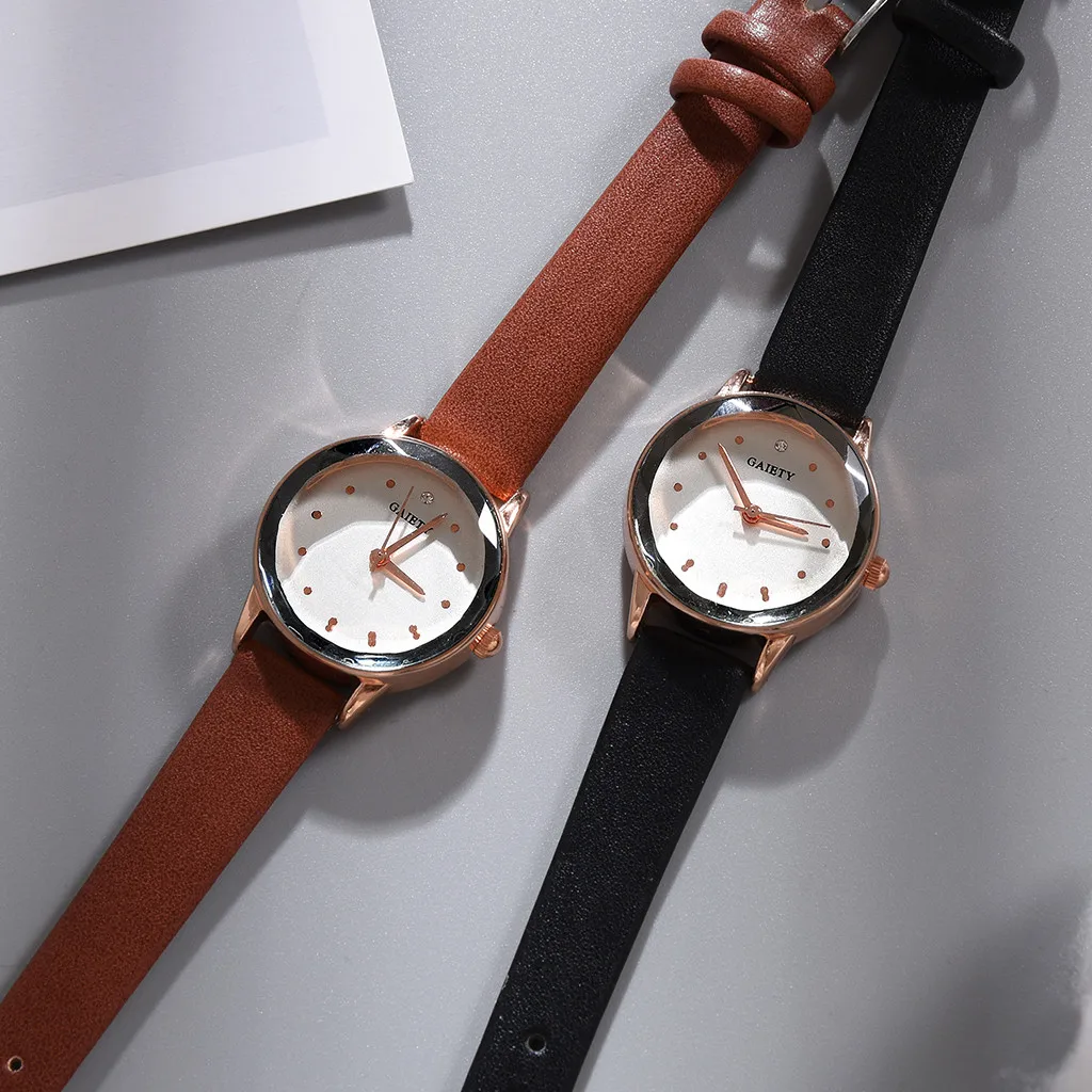 Модные Простые женские часы монохромный тонкий кожаный ремень наручные часы небольшой циферблат женские часы девушка вмятина часы женски подарки