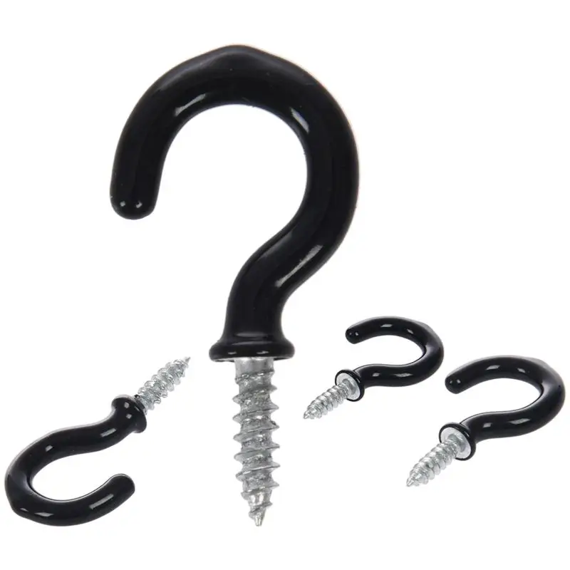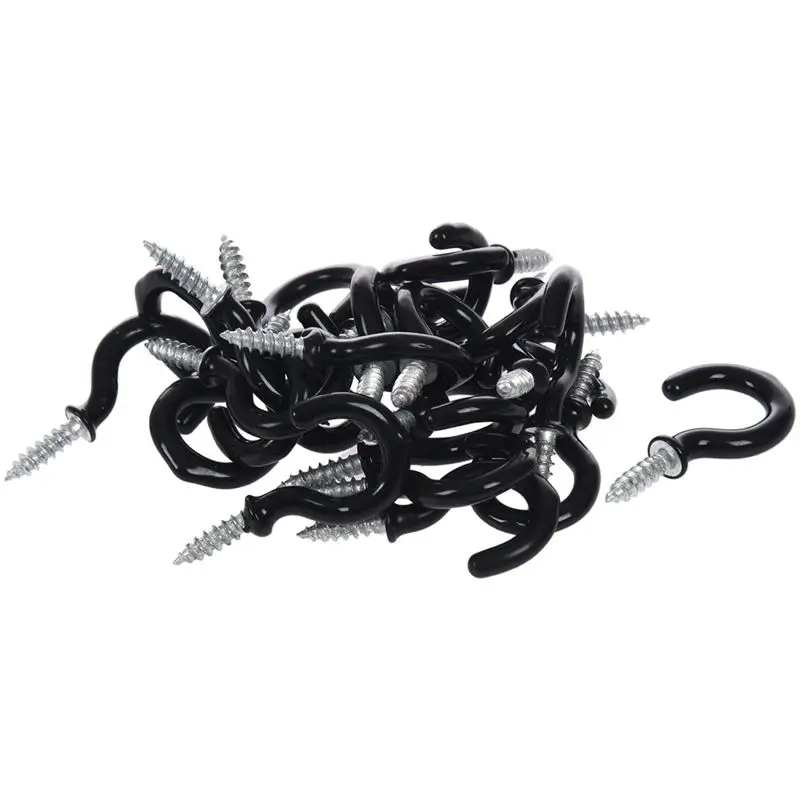1,1 "чашки кружки крючки с плечом металла винт-в пластиковым покрытием висит черный 25 шт