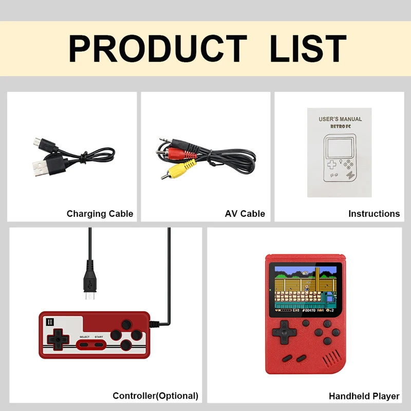 Игровая консоль имеет 800 уникальных классических игр FC, возьмите вас обратно в удовольствие от детства. С экраном 3,0 дюйма, ультра тонкий и компактный дизайн, достаточно мини для вас, чтобы провести. Поддерживает режим двух игроков, подключая геймпад, вы можете играть с вашим партнером.