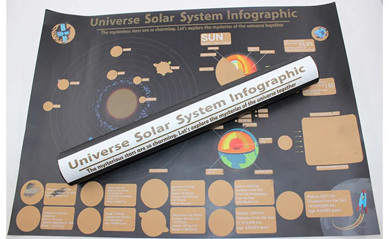 Роскошная стираемая Солнечная система, астероиды, царапаются, Черное золото, Карта мира, 57,5*41,8 см, декоративные наклейки на стену для комнаты, дома, офиса