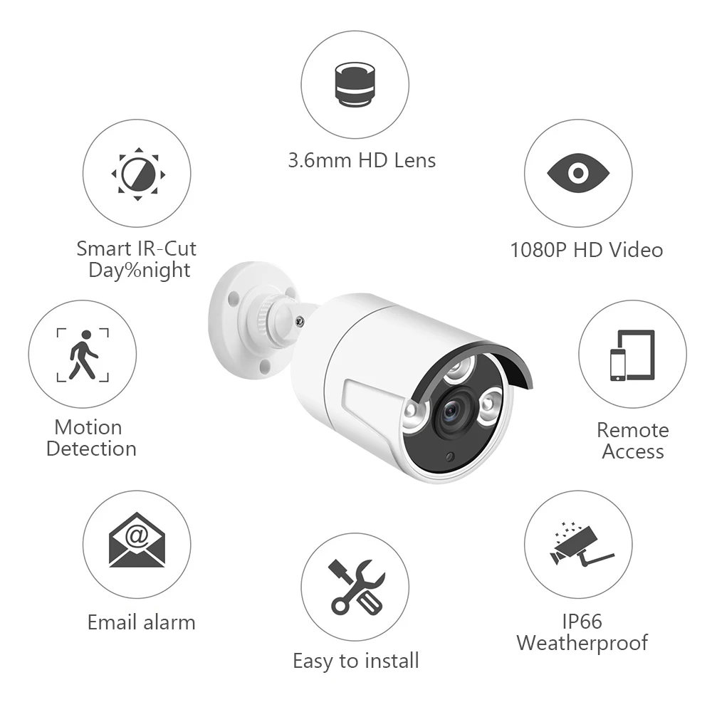 Описание: Эта аналоговая камера может использоваться в открытых и внутренних местах, поддерживает ночное видение и ночное видение расстояния до 30 м (100 футов), поддерживает обнаружение движения, водонепроницаемость IP66, интеллектуальная система движения, вы этого заслуживаете!
