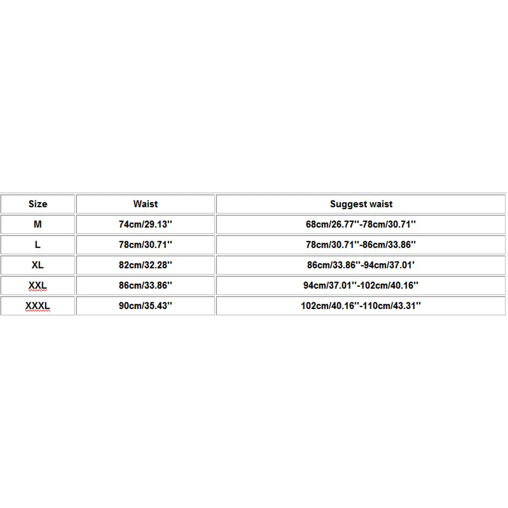 Что вы получаете: 1 мужской купальникРазмеры Обхват талии Рекомендуемый обхват талии М 74 см/29,13'' 68 см/26,77 ''-78 см/30,71'' L 78 см/30,71'' 78 см/30,71 ''-86 см/33,86'' XL 82 см/32,28'' 86 см/33,86 ''-94 см/37,01' XXL 86 см/33,86'' 94 см/37,01 ''-102 см/40,16'' XХХL 90 см/35,43'' 102 см/40,16 ''-110 см/43,31''