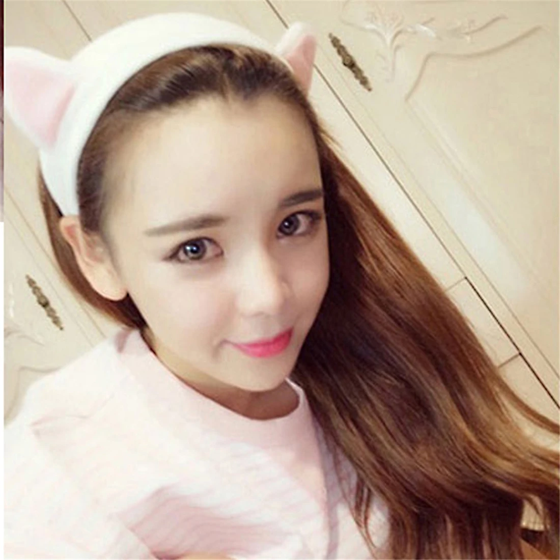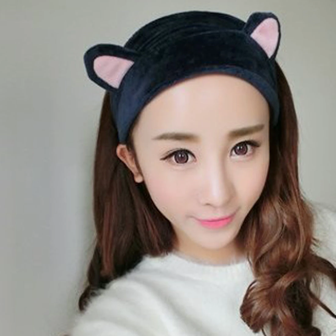 Милая повязка на голову с кошачьими ушками, повседневная Вечерние лента для волос для нанесения макияжа, мягкие бархатные аксессуары для волос