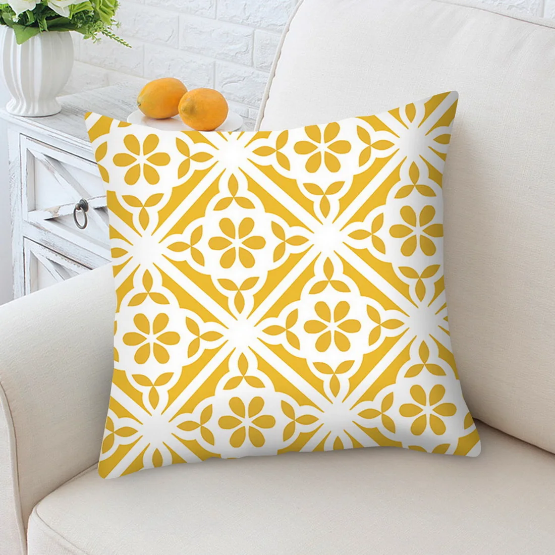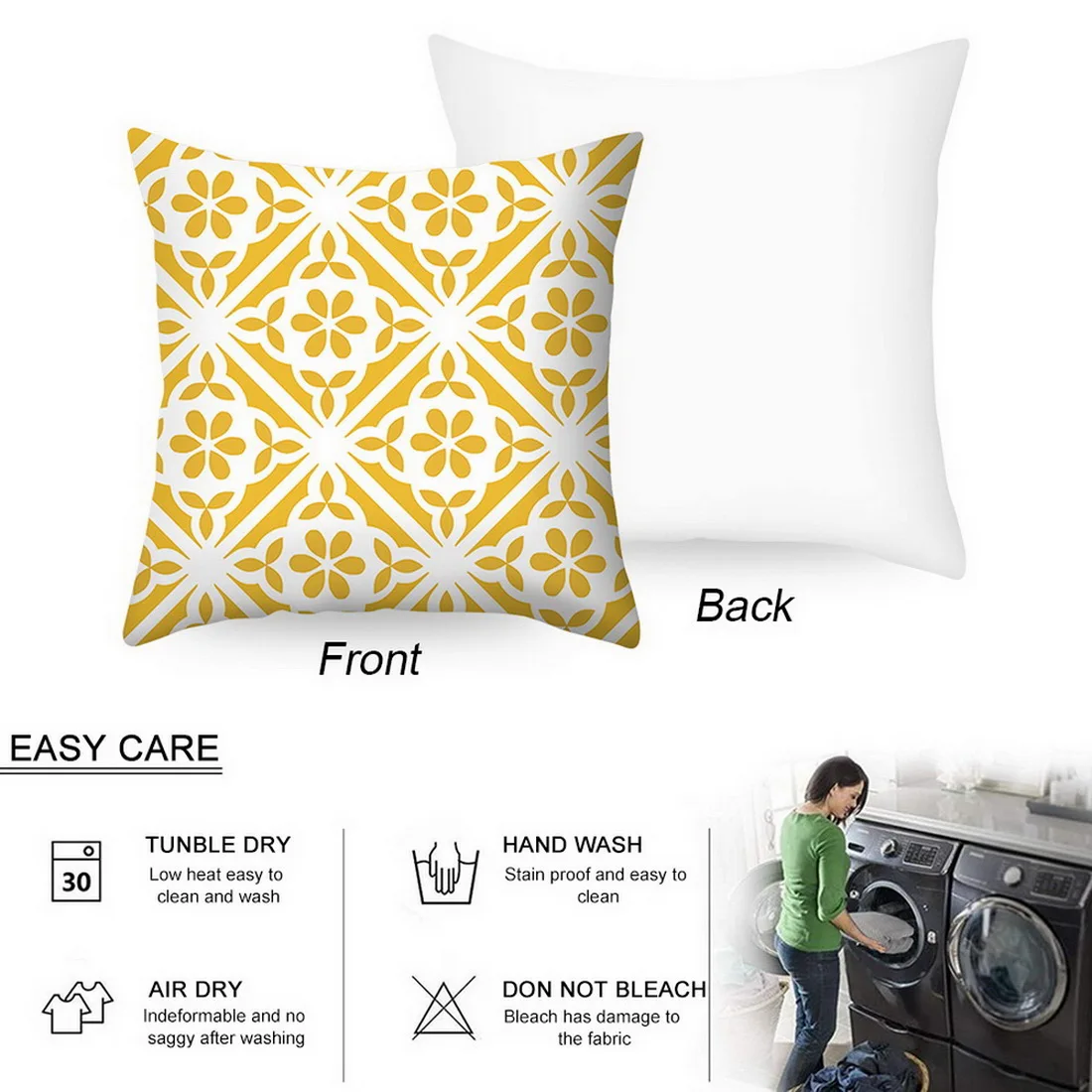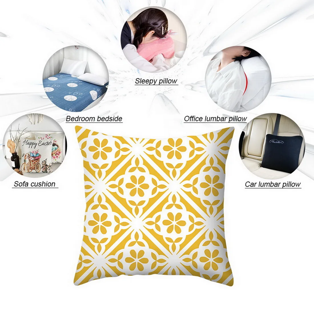 Особенности Домашний декор желтый принт наволочка, узор только с одной стороны с другой стороны пустой, предоставляя вам возможность DIY Модный чехол для подушки с геометрическим принтом, мягкий и удобный для использования Чехол для подушки из прочной полиэфирной ткани и уникальный дизайн создают стильный комфорт на диване, диване, полу, скамейке или кровати
