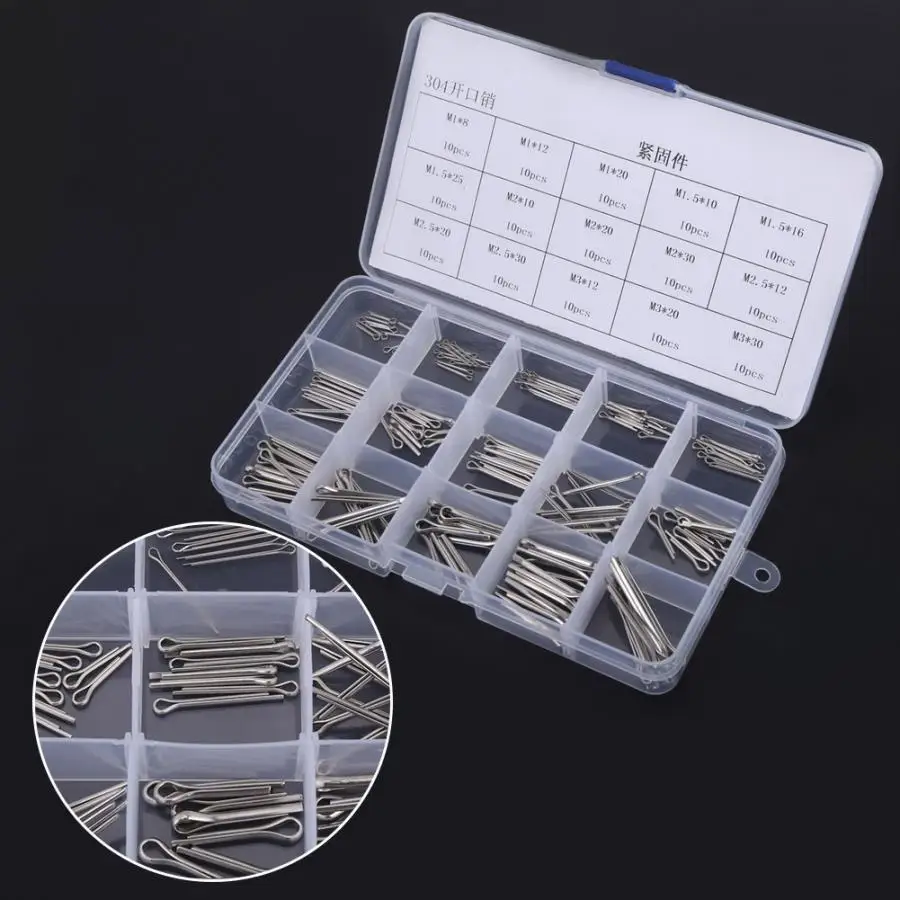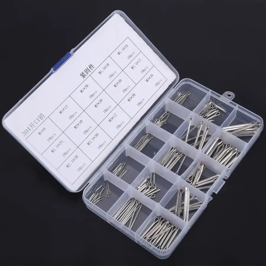 Изготовлен из нержавеющей стали, поэтому он является прочным в использовании. Этот продукт содержит 150 шт.15 видовСплит-штифты, M1,M2,M3, каждый вид включает в себя 10 шт., которые отвечают вашим требованиям. С широким применением, практичные механические промышленные крепления. Тонкое мастерствоСплит-шплинт поверхность гладкая, без заусенцев. Отличается высокой твердостью,Устойчивый к ржавчине, устойчивый к коррозии.