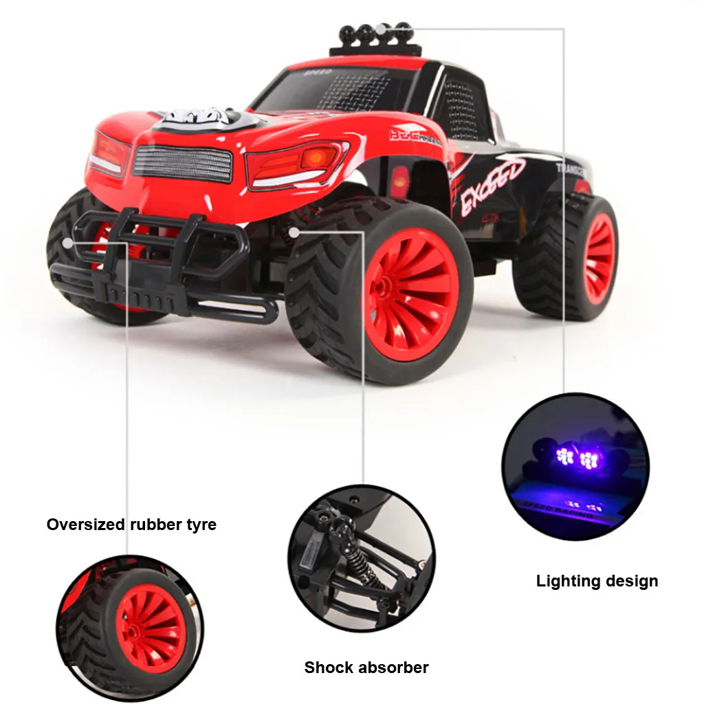 -Нескользящая шина, легко надевается Пересечь различные рельефы, песок вождения, рок-пляж, луг вождения. -Независимая четырехколесная Амортизаторы поглощают удары, вызванные ухабистой поверхностью дороги. -Большой угол поворота, шина Вращение имеет большую перспективу, большой угол, вы можете легко справиться с Все виды дорожных секций. -Пульт дистанционного управления 2,4G. -45 ° скалолазание, Мощный полноприводный двигатель, а затем с крутым наклоном можно легко разобраться. Передняя часть автомобиля Разработан с подсветкой, что делает его более прохладным, чтобы играть ночьюПараметры: