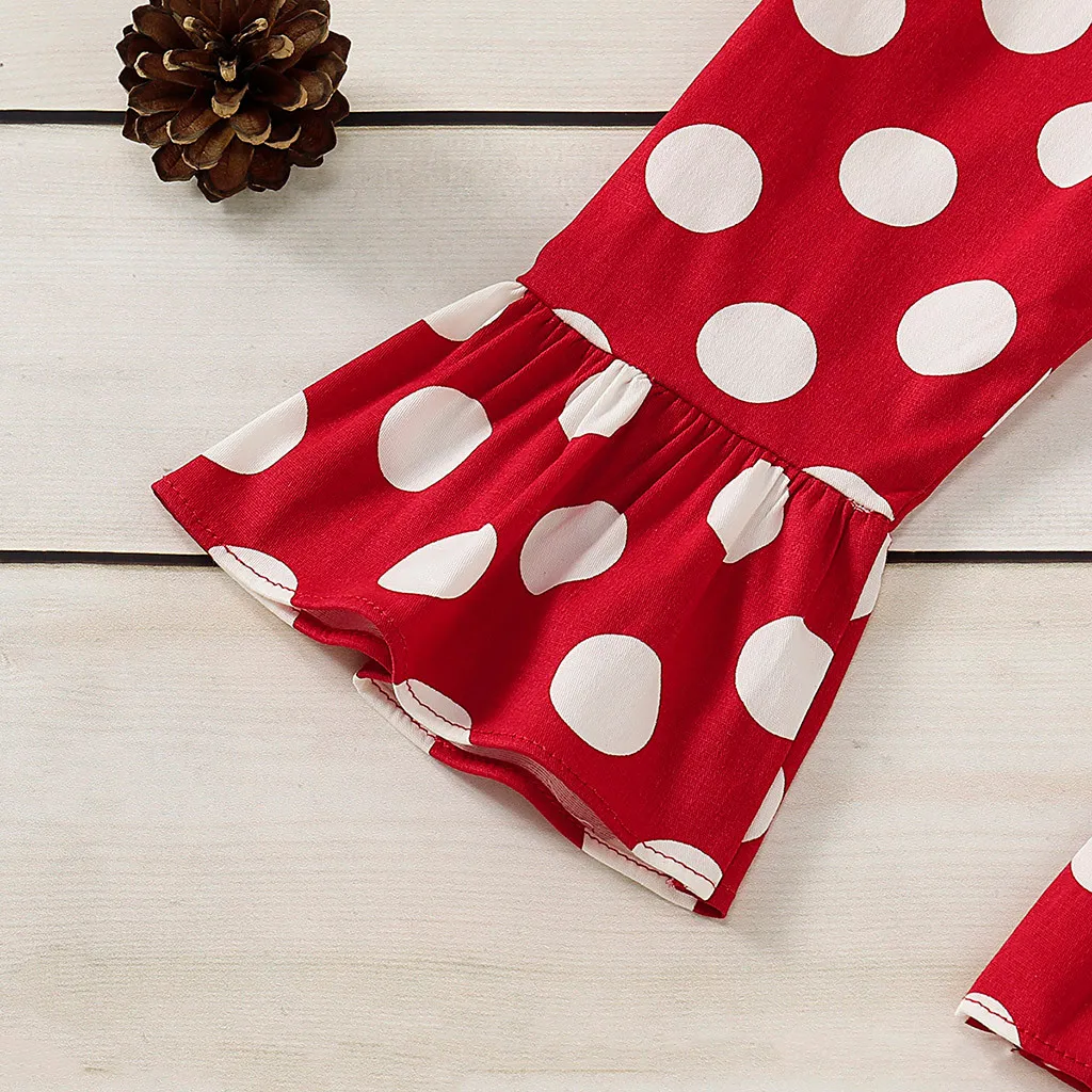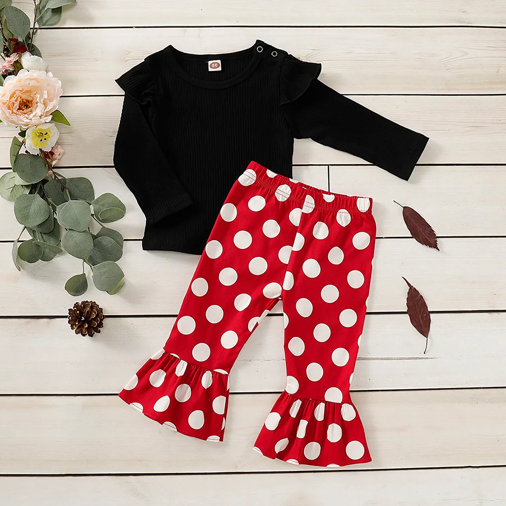 Осенне-зимний комплект одежды из 2 предметов для маленьких девочек, футболка с оборками для маленьких девочек топы и штаны в горошек Roupa Infantil Menina