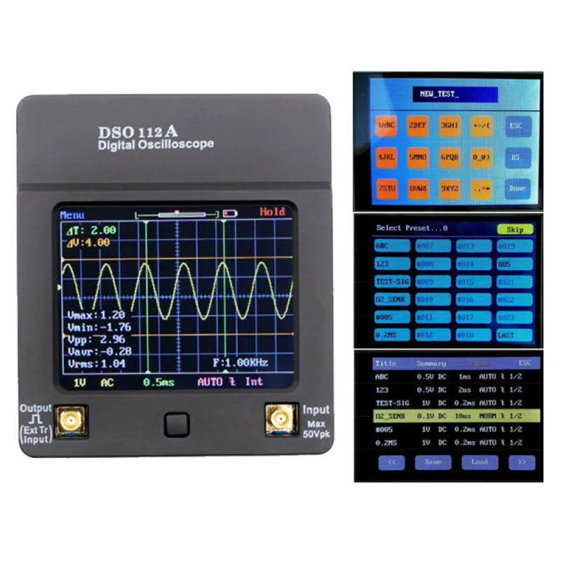 * DSO112A-это карманный осциллограф с цветным дисплеем и сенсорным экраном. Причина, по которой DSO112A выделяется из своих сверстников, заключается в его простых операций, которые очень легко трогать и прокручивать. Почти все само-учится. Вы не потеряетесь, как и другие ручные осциллографы. DSO112A предназначен для студентов и любителей, Это осциллограф начального уровня. Размер DSO112A подходит для ваших рук и карманов, и его функция выходит за рамки вашего воображения. Высокая чувствительность (2МВ/див), высокая точность и низкий уровень шума являются основными моментами DSO112A, что делает его полезным инструментом для обнаружения небольшого сигнала. TFT цветной ЖК-дисплей, литий-ионный аккумулятор 1200 мАч (в комплекте)... Все это приносит большую пользу для удобства использования.