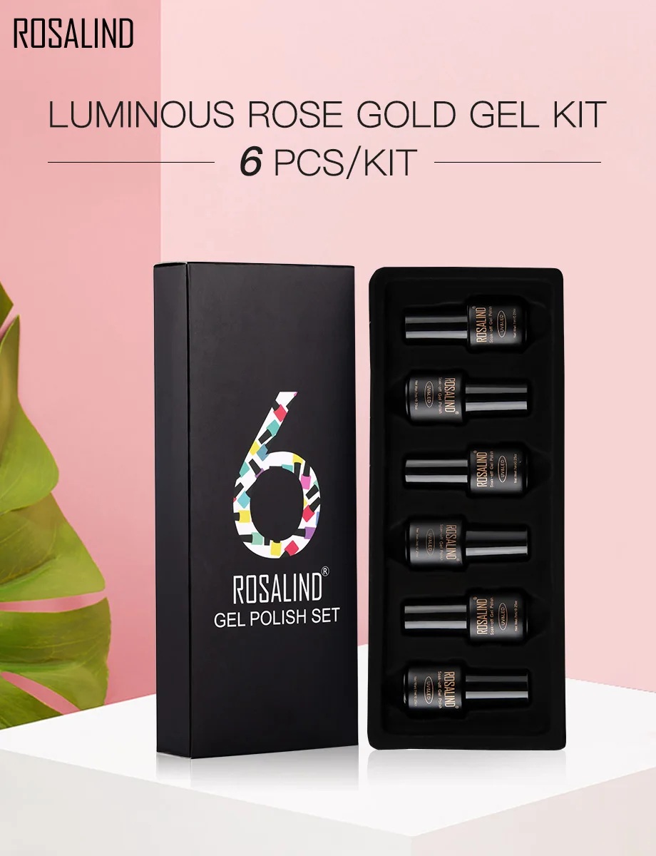 ROSALIND 7 мл светящийся розовый золотистый Гель-лак Набор Яркий для дизайна ногтей светодиодный/УФ-лампа