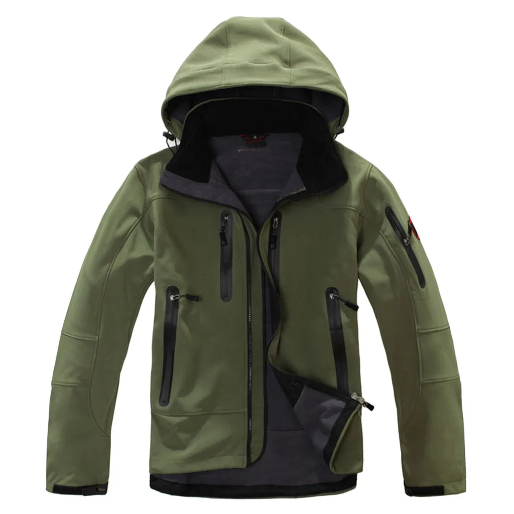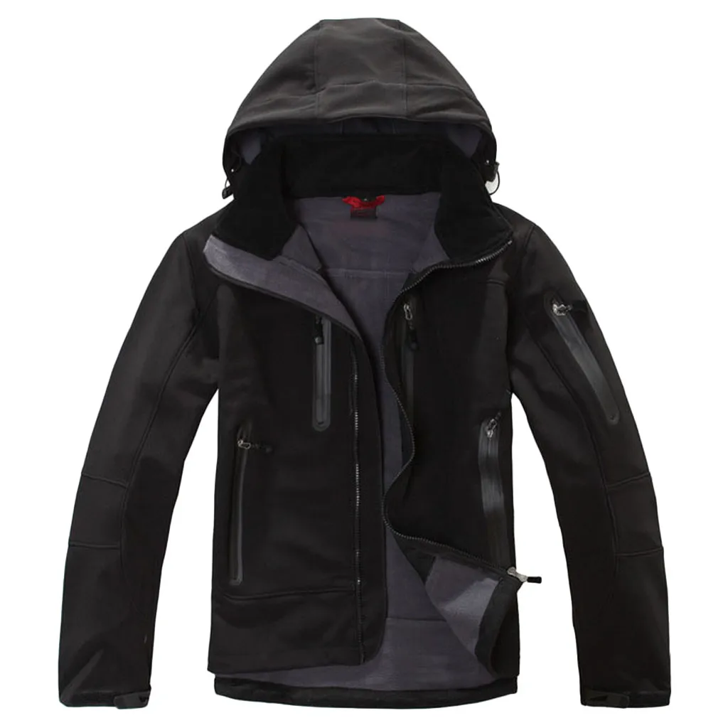 Мужская зимняя флисовая куртка с капюшоном для ветронепроницаемого и водонепроницаемого мягкого пальто