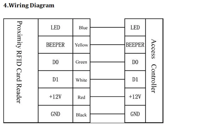 Пожалуйста, внимательно прочтите инструкцию перед использованием устройства 1. Особенности Пластиковый чехол Очень низкое энергопотребление, ток в режиме ожидания менее 30 мА Выход WG 26 Быстрая скорость поиска: время между считывающей картой и открыванием двери составляет менее 0,1 с 2. Технические характеристики