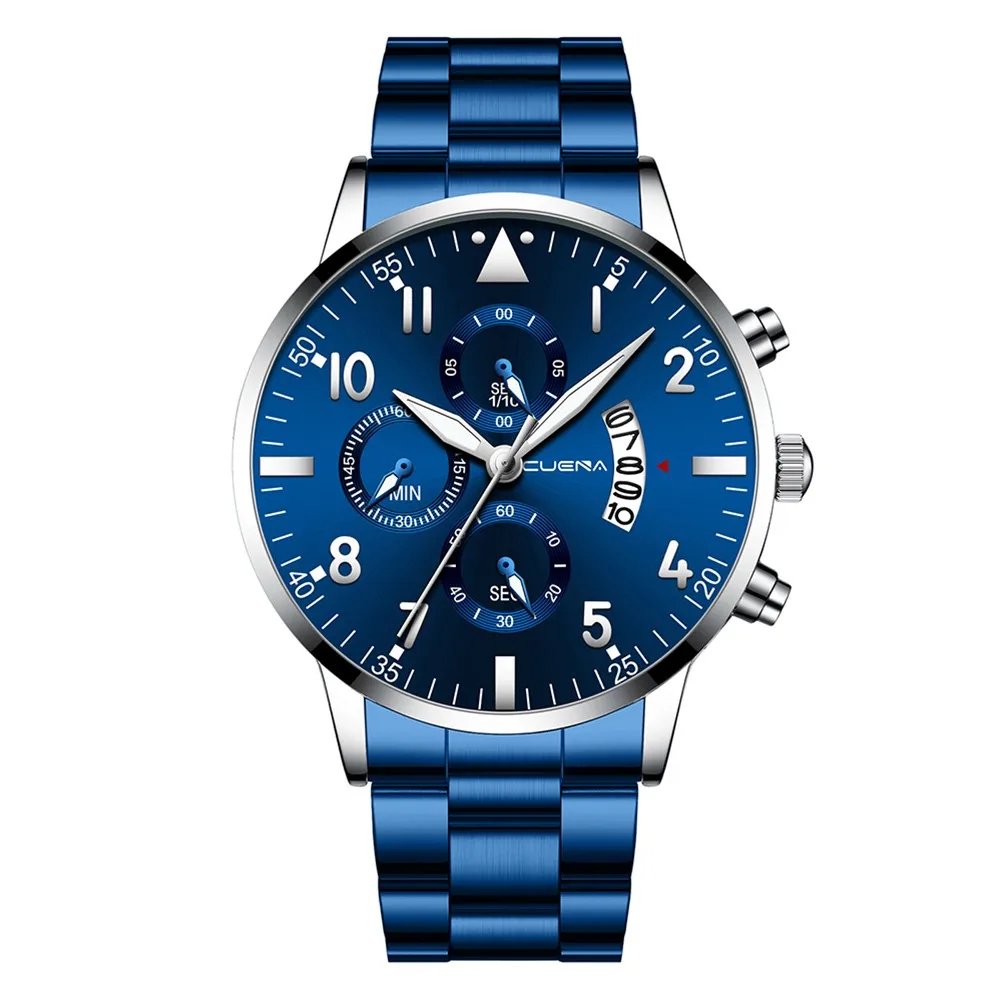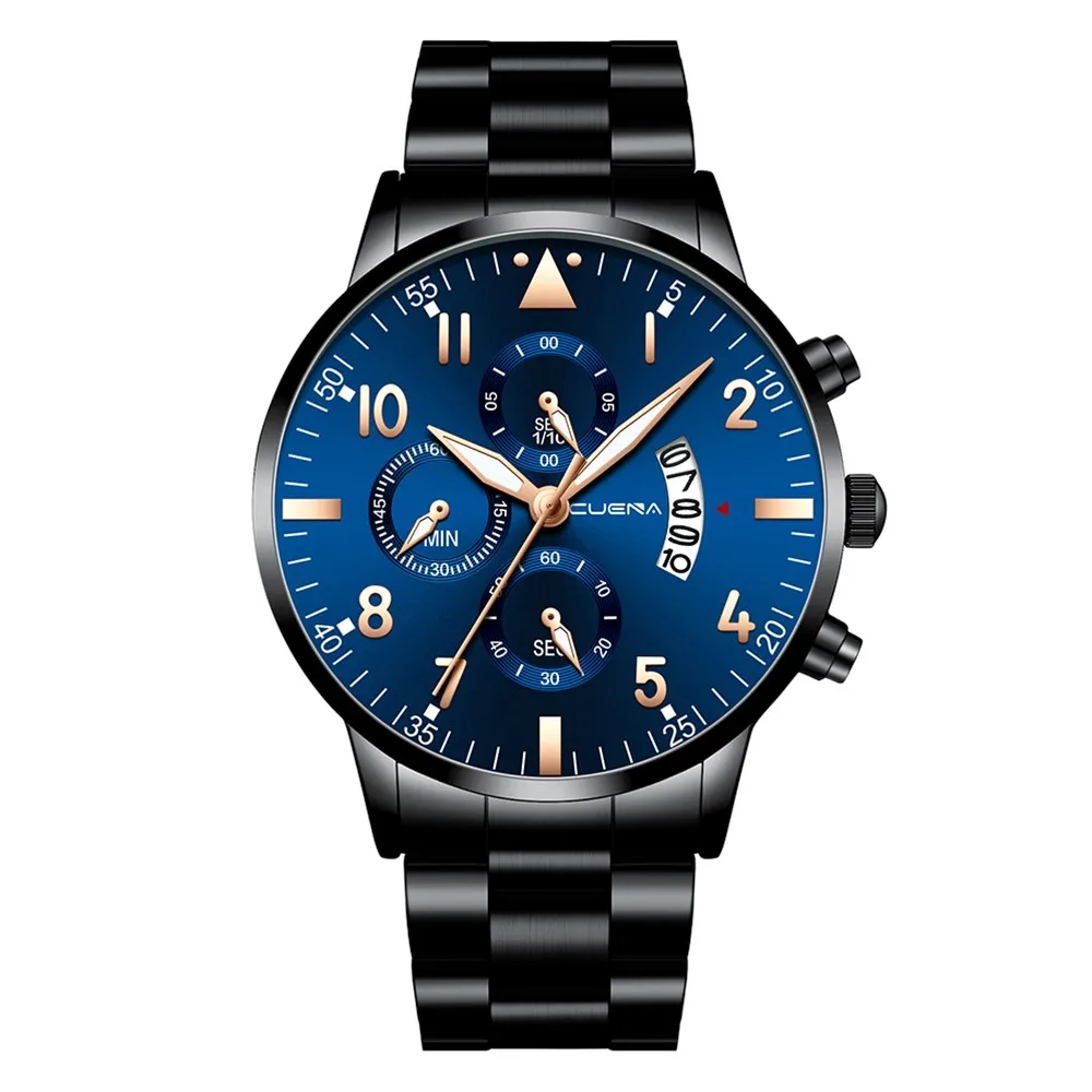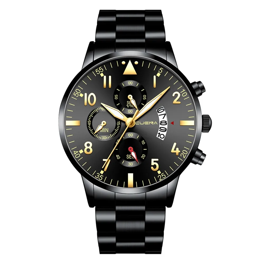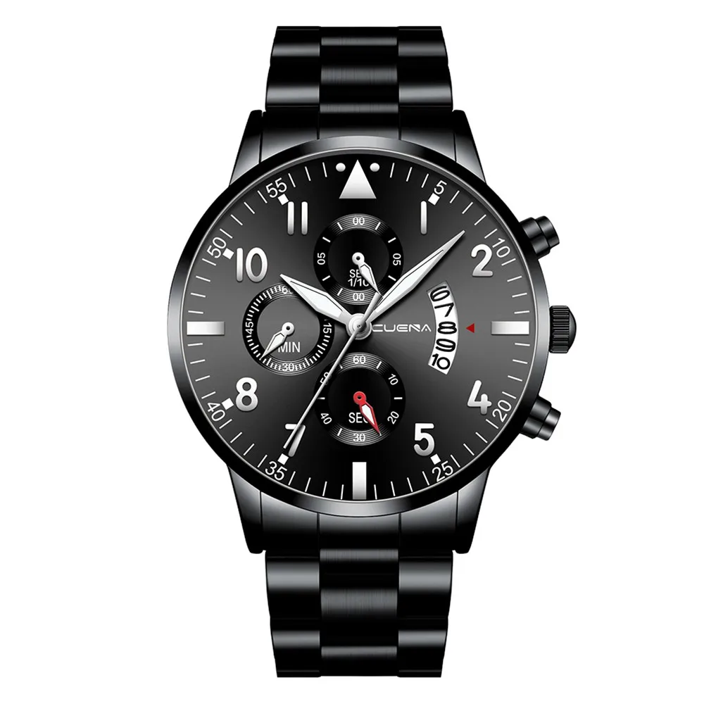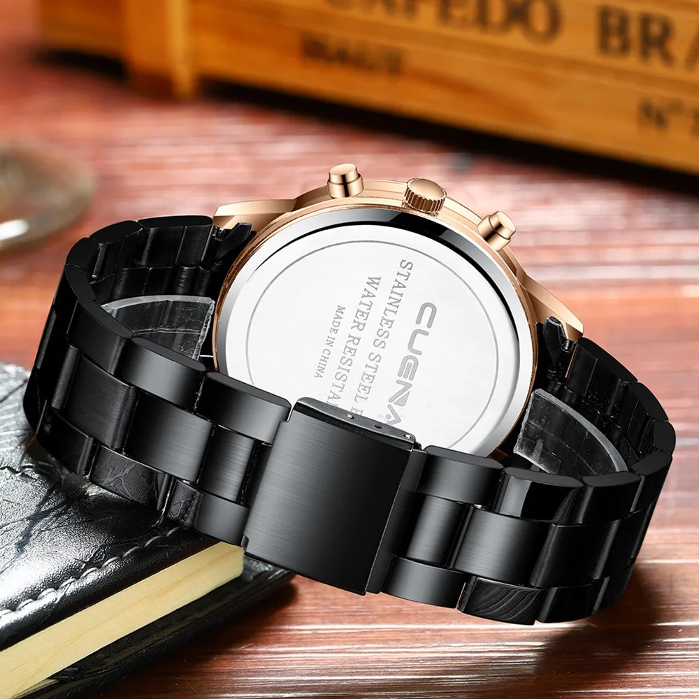 CUENA мужские бизнес Аналоговые кварцевые наручные часы с датой, модные часы из нержавеющей стали с круглым циферблатом, очаровательные Подарочные часы для мужчин, черные