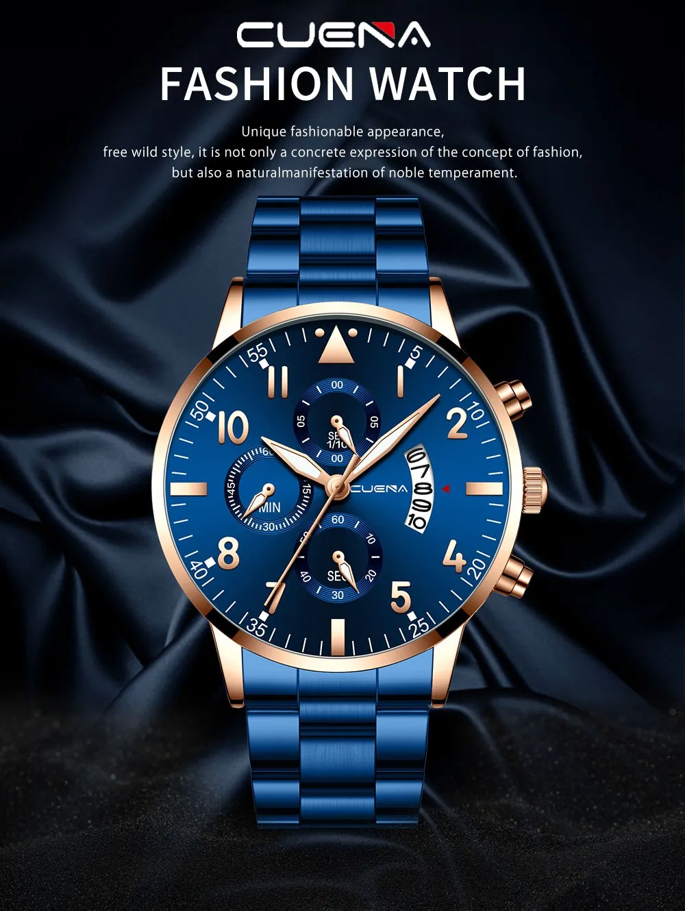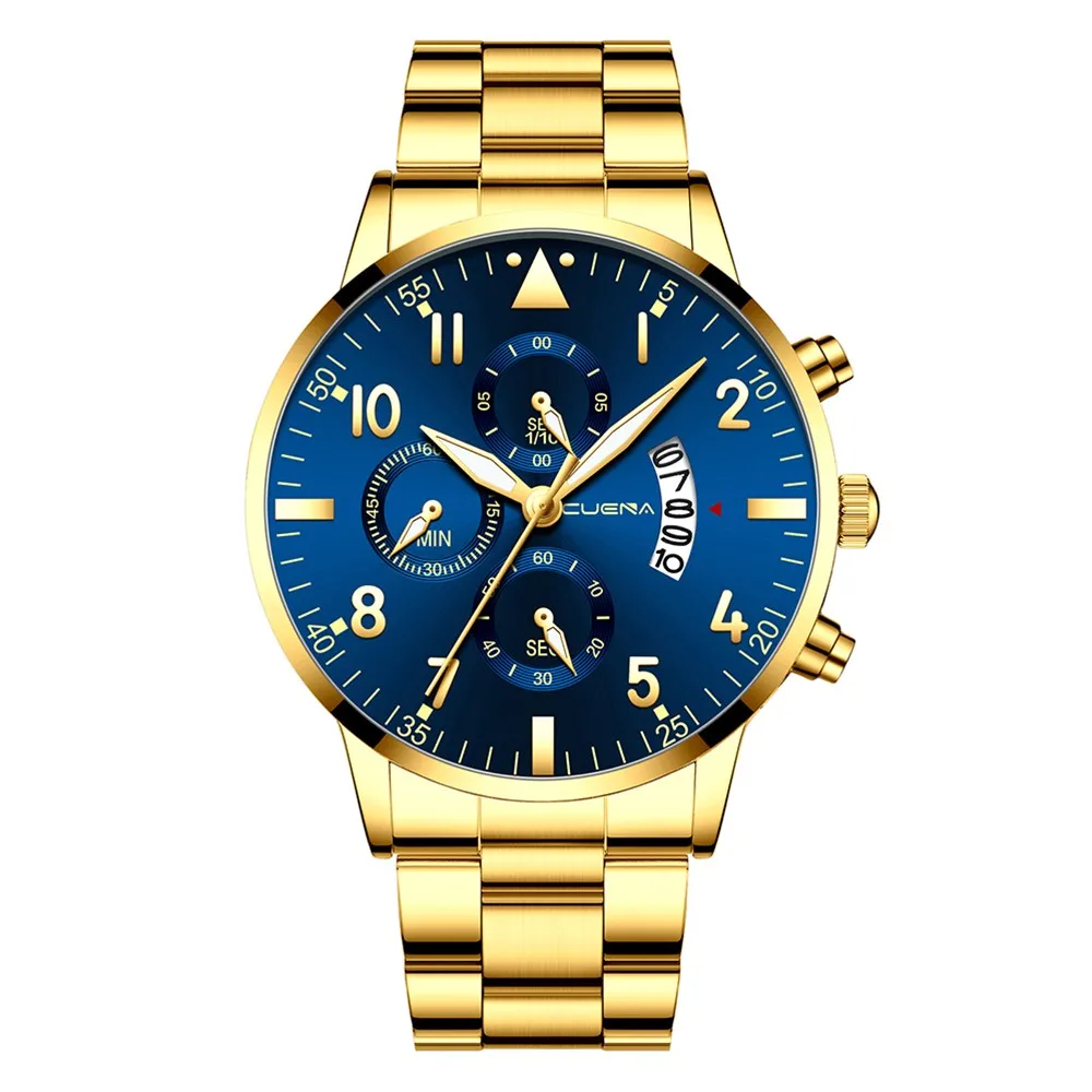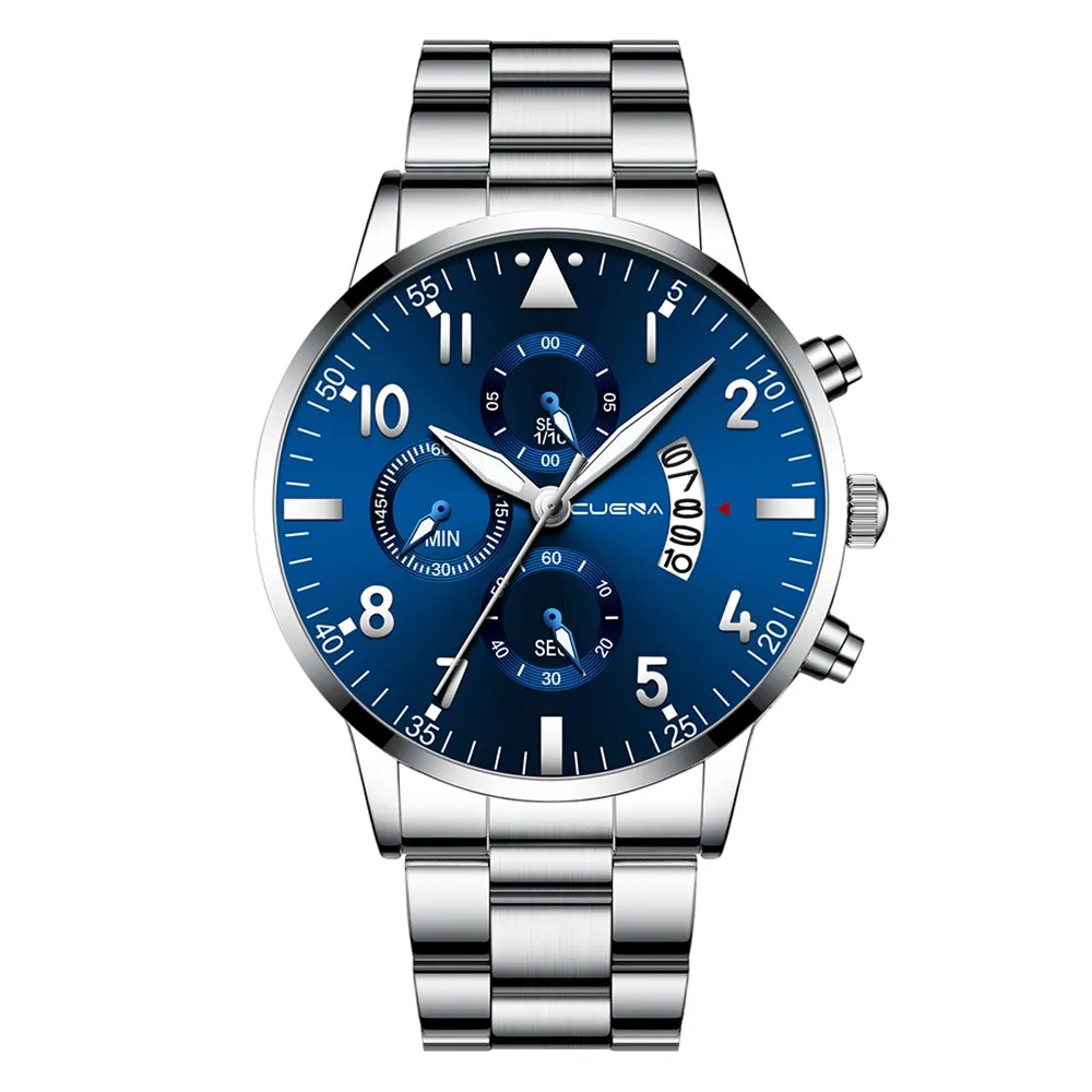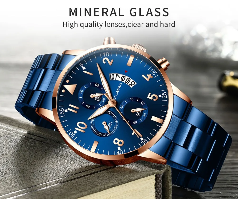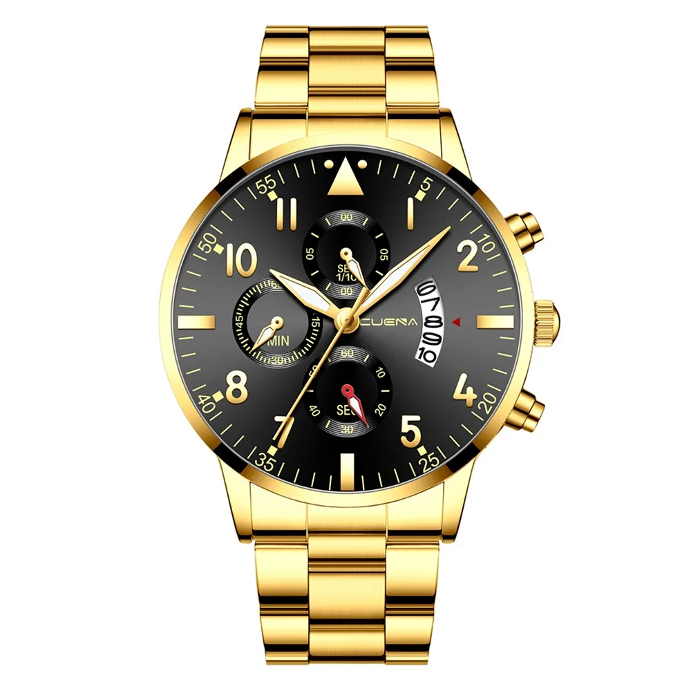 CUENA мужские бизнес Аналоговые кварцевые наручные часы с датой, модные часы из нержавеющей стали с круглым циферблатом, очаровательные Подарочные часы для мужчин, черные