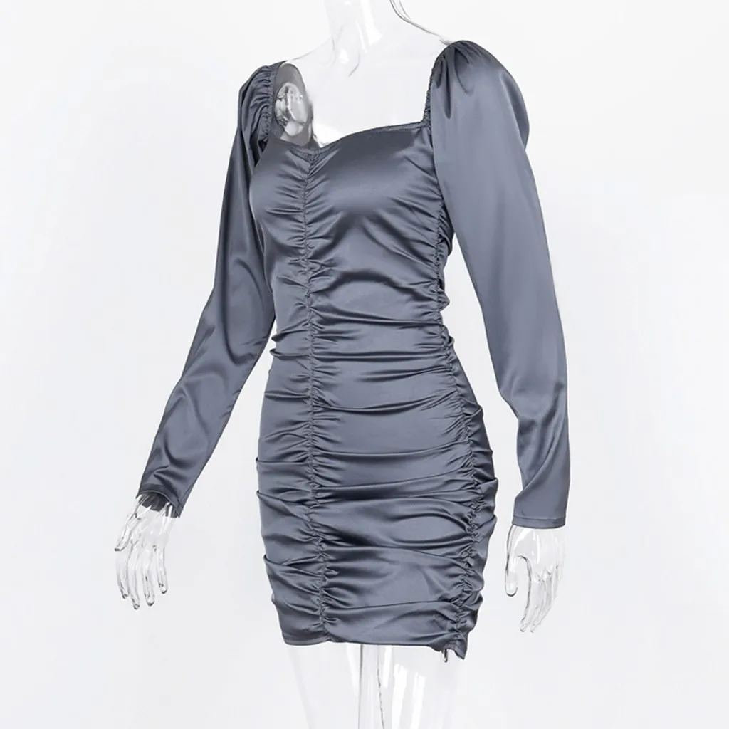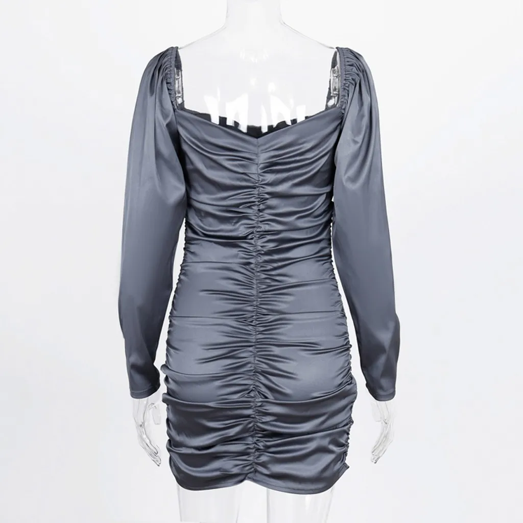 Сексуальное женское блестящее вечернее платье с v-образным вырезом и длинным рукавом