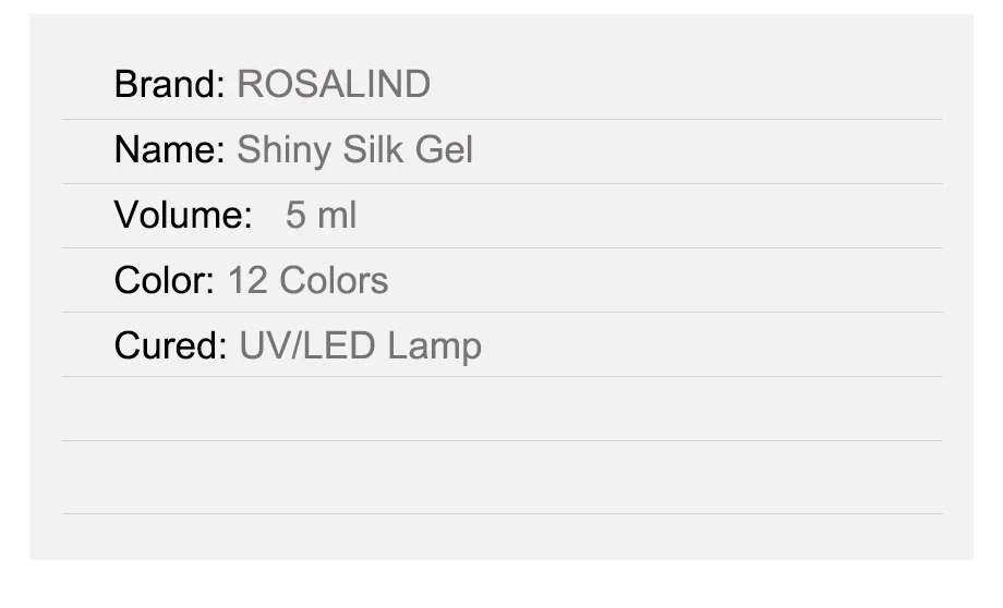 Характеристики изделия: название бренда: ROSALIND Название: Блестящий шелковый гель объем: 5 мл цвет: 12 цветов вылечено: УФ/светодиодный светильник-качество является нашим первым приоритетом. -Светильник, почти без запаха (только верхнее покрытие и основа имеют умеренный запах), мы применяем только органическую текстуру для защиты вашего здоровья. -Цвет сохранит блеск до 30 дней. -Hotting цвета опционально, подходит для всех случаев. Шаг за шагом:-1. Форма ногтя. Слегка полируйте поверхность ногтевой пластины. Продезинфицируйте. -2. Нанесите Базовое покрытие основы от кутикулы до свободного края (не забудьте запечатать край ногтя). Вылейте ногти под светодиодный светильник в течение 10 секунд или УФ-светильник в течение 2 минут. -3. Нанесите тонкое покрытие гель-лака на выбор. Кепки со свободными краями. Лечение: 30 секунд светодиодный светильник или 2 минуты УФ-лампы. -4. Повторите 2-е тонкое покрытие гель-лака для ногтей. Вылейте светодиодный светильник в течение 30 секунд или УФ-светильник в течение 2 минут. -5. Нанесите верхнее покрытие. Кепки со свободными краями. Лечение: светодиодный светильник 30 секунд. -6. Удалите липкие остатки на ногтях с помощью моющего средства. Затем нанесите питательное масло для кутикулы, чтобы увлажнить кутикулу и кожу вокруг ногтя. Для удаления:-1. Замочите ногти в акриловом удалителе около 5 минут. -2. Аккуратно разорвите весь кусок эмали для ногтей на каждом ногте. Внимание: 1. Объем составляет 5 мл. Так как емкость бутылки более 5 мл, гель для ногтей не будет полностью заполнен бутылкой! 2. Сохраняет герметичность. Беречь от солнечного света. Хранить в недоступном для детей месте.