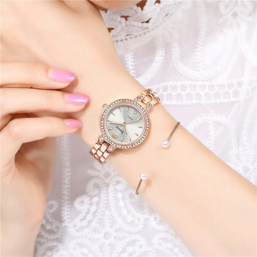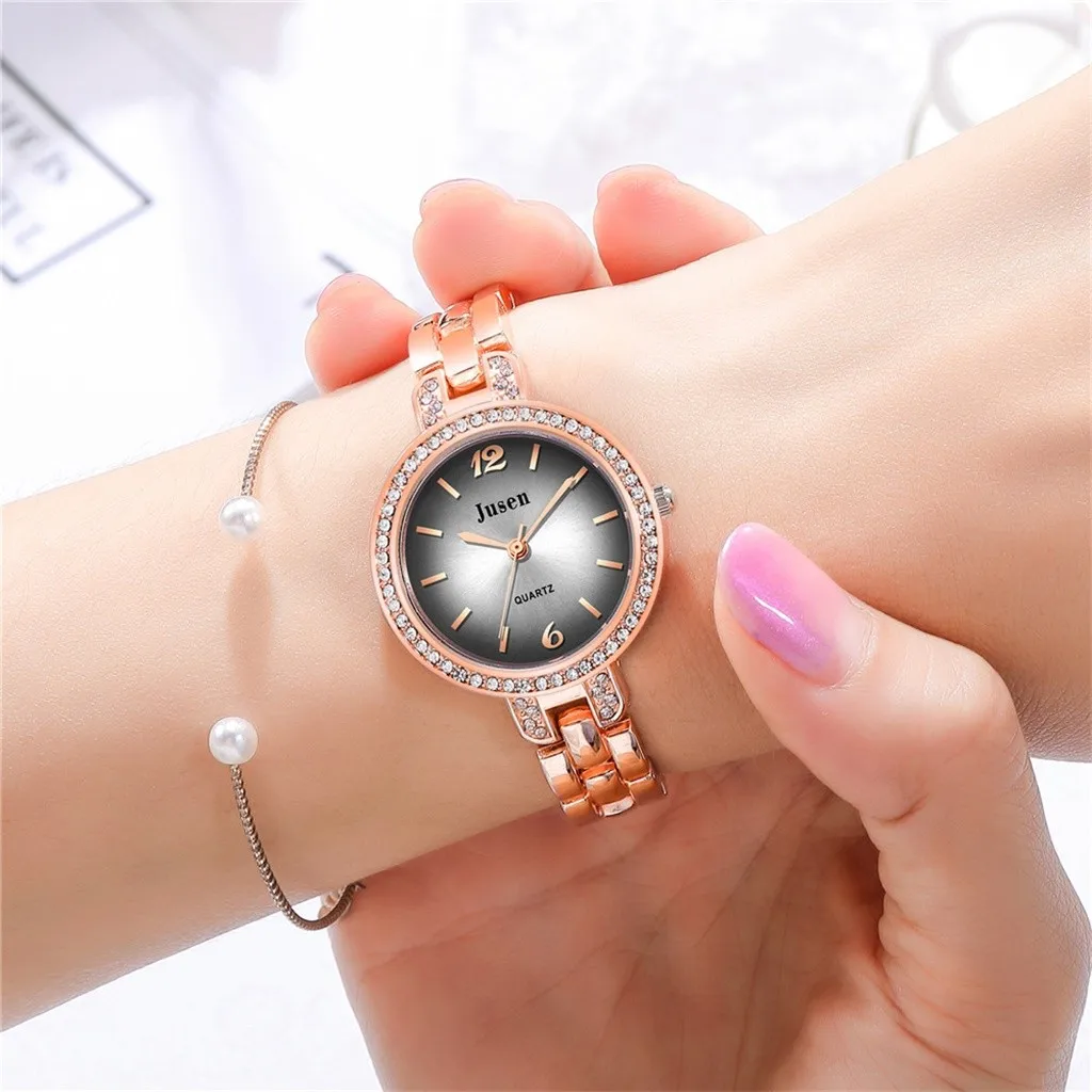 Женские Простые Часы Из Инкрустированного сплава, браслет, кварцевые часы, подарок, модные тонкие часы с маленьким циферблатом, элегантные золотые часы