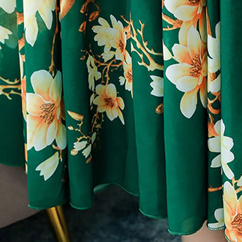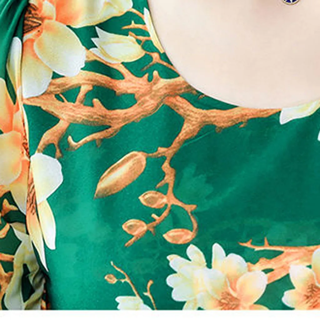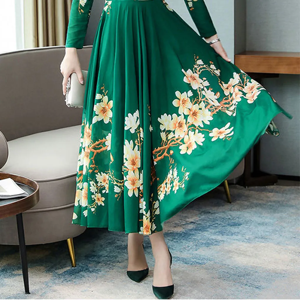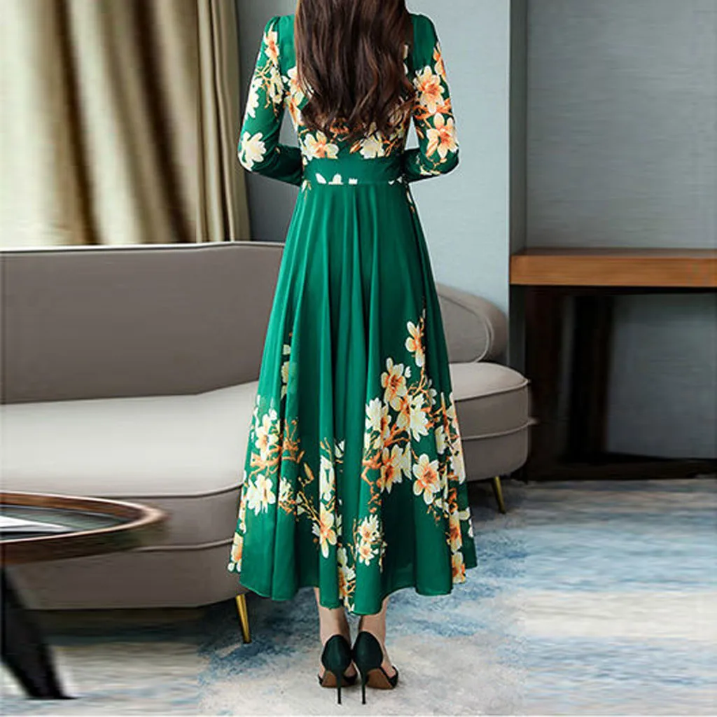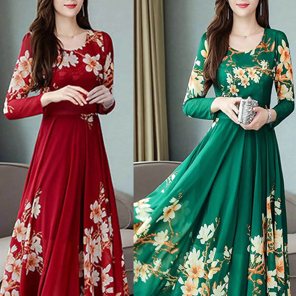 Женское платье с круглым вырезом, длинным рукавом и цветочным принтом, ТРАПЕЦИЕВИДНОЕ ПЛАТЬЕ