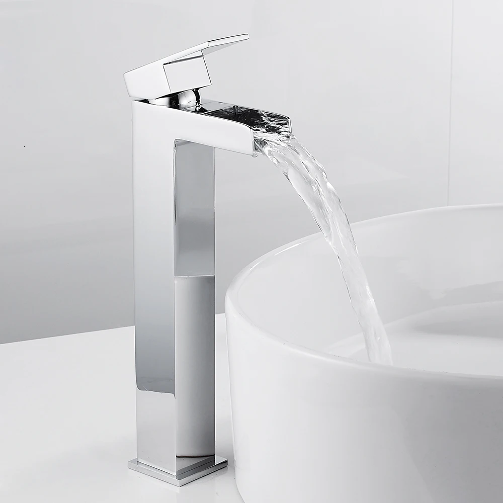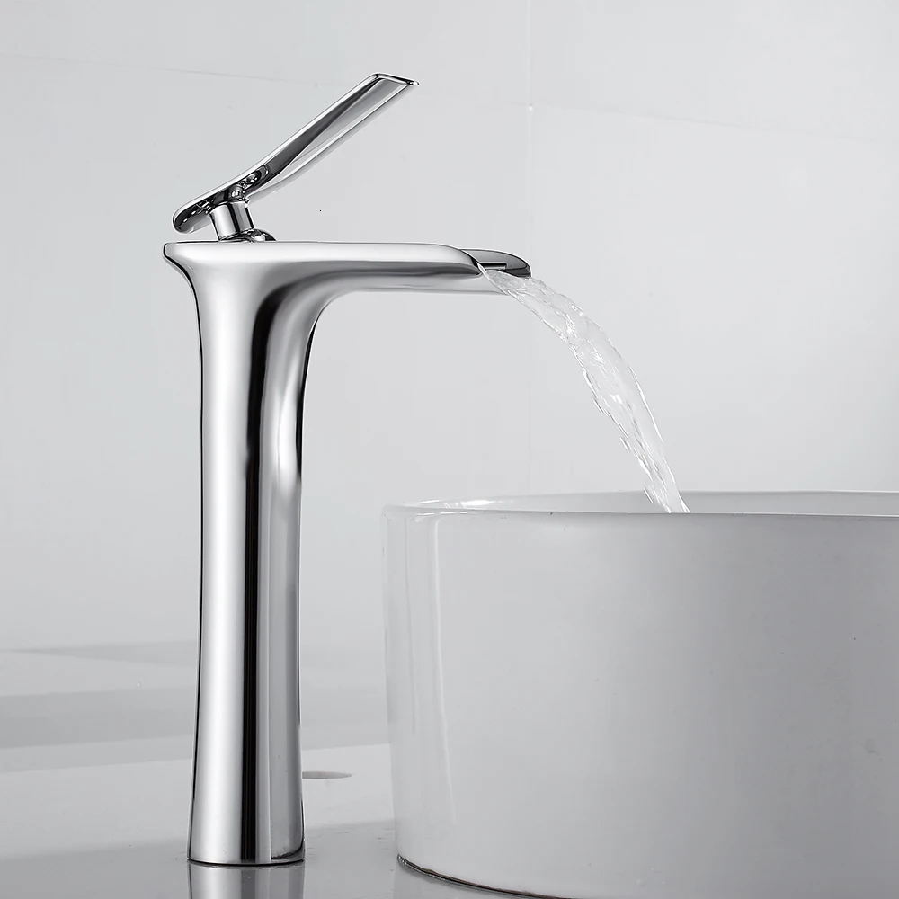 Водопад кран, раковина кран, ванная комната кран, высокий хром кран, ворс отверстий